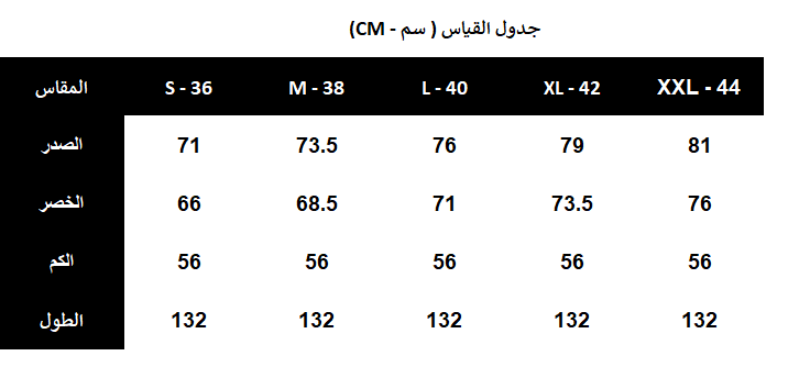 إرشادات العناية: يغسل ويكوى بالبخار بدرجة حرارة منخفضة 40% ويجفف بالتعليق.
