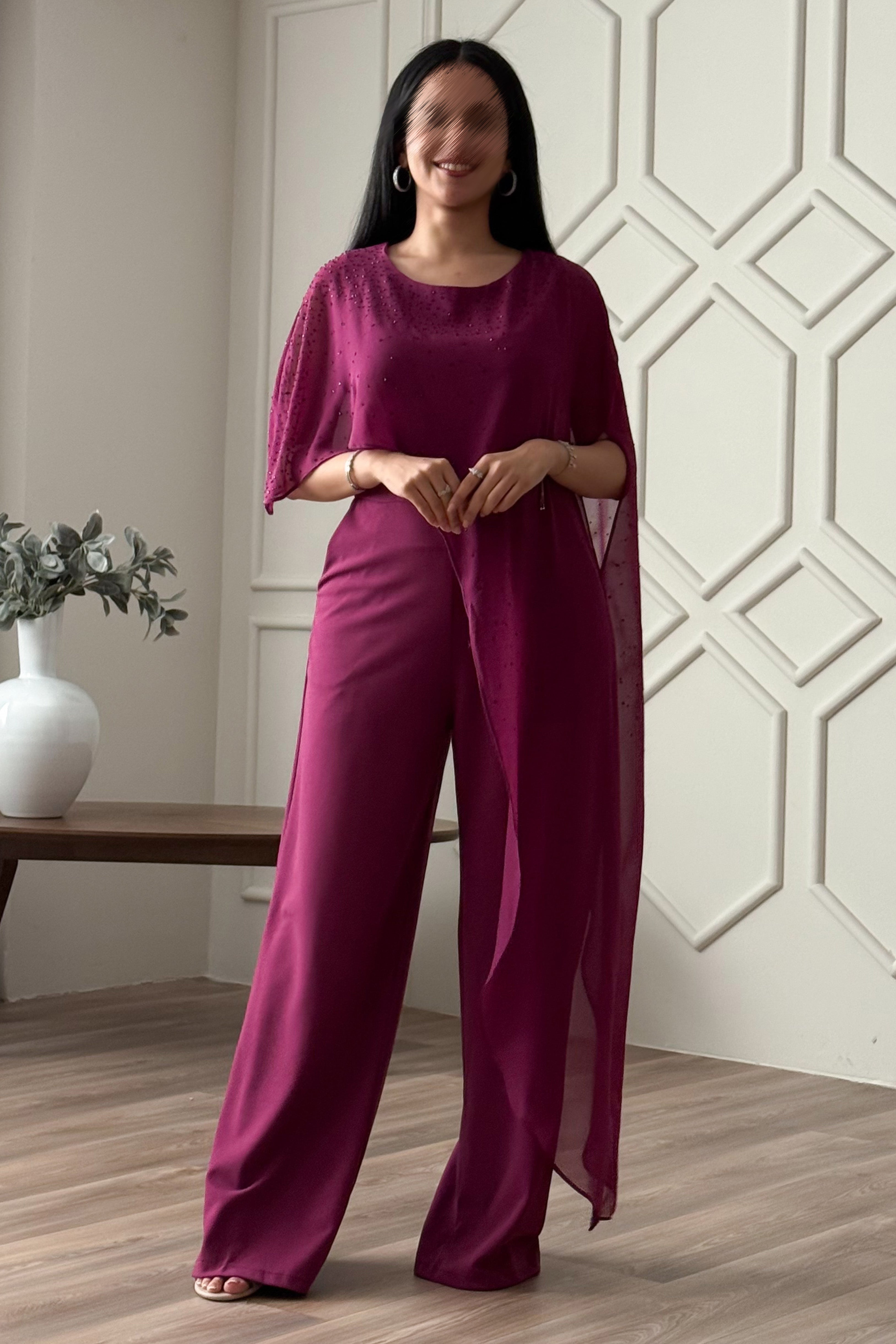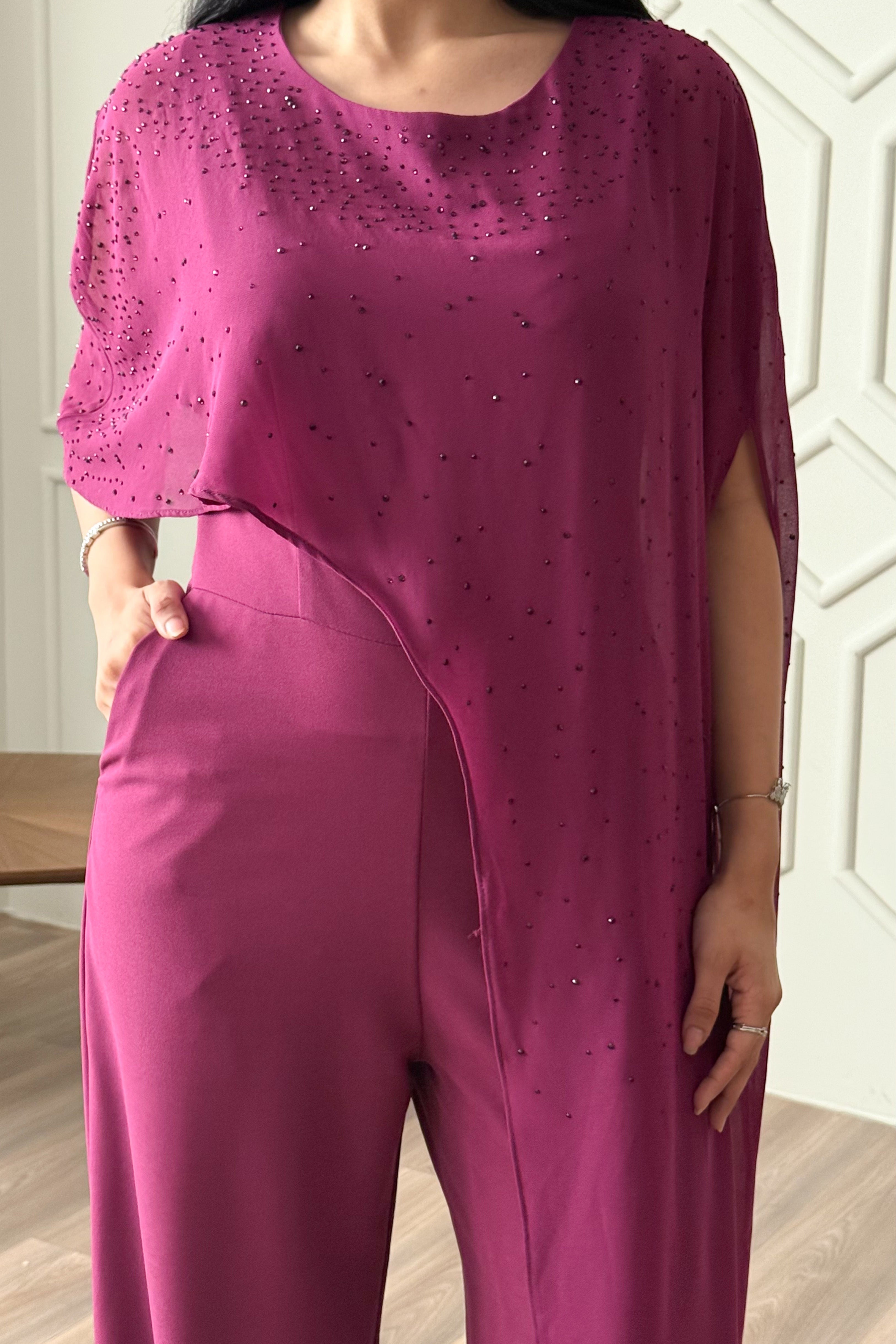 جمبسوت بوشاح غير متساوي الطول مزين بالفصوص