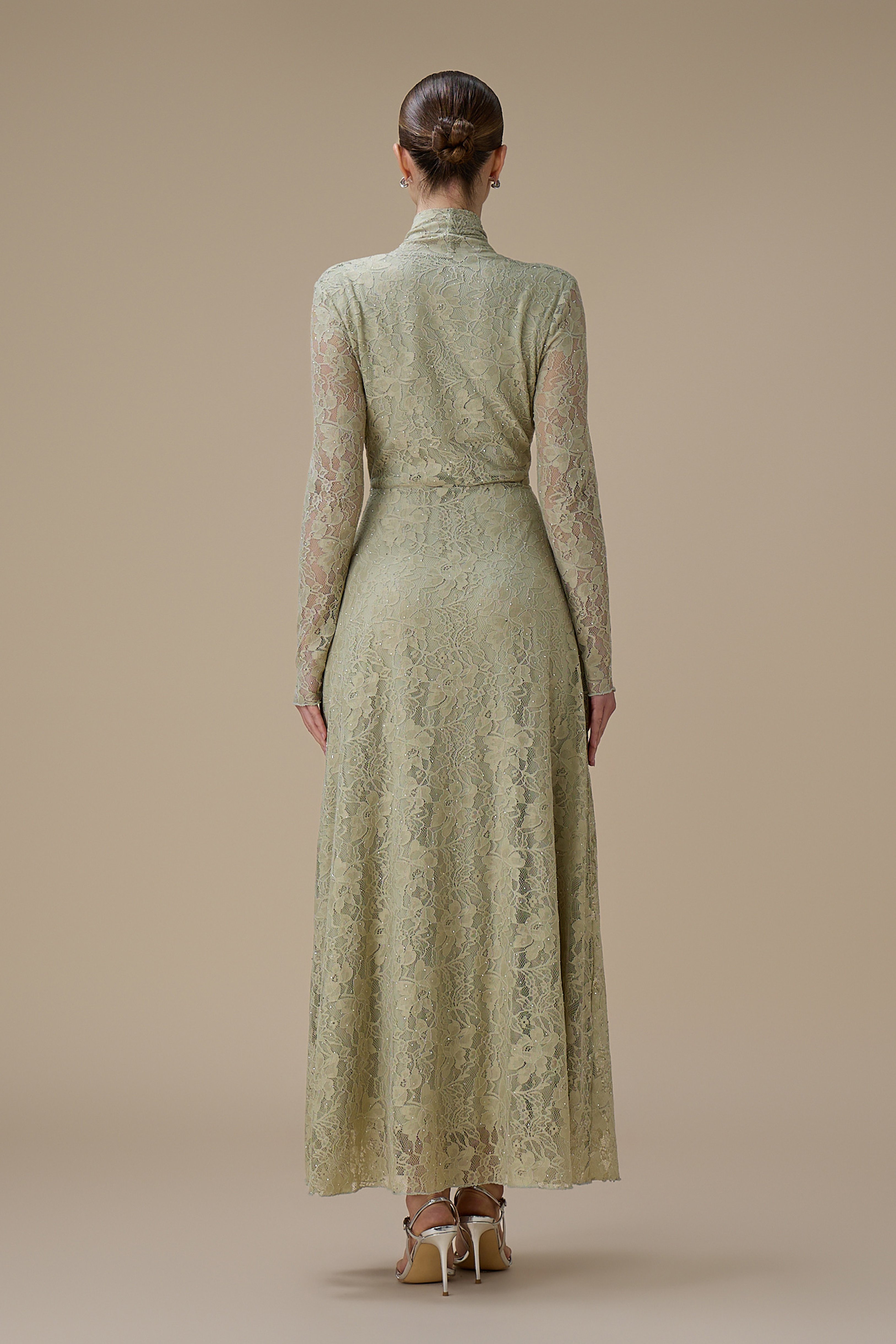 فستان اخضر فاتح طويل دانتيل