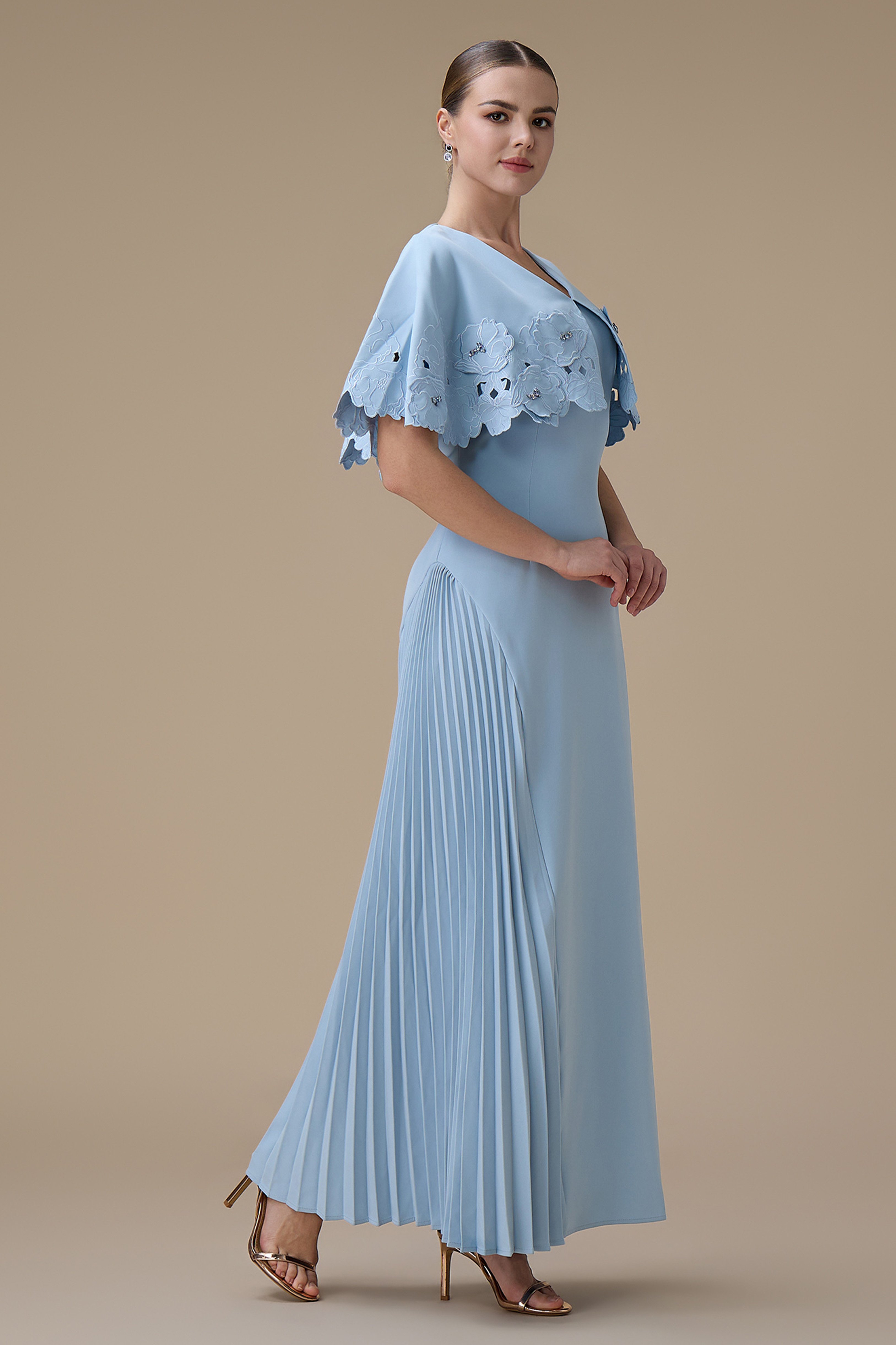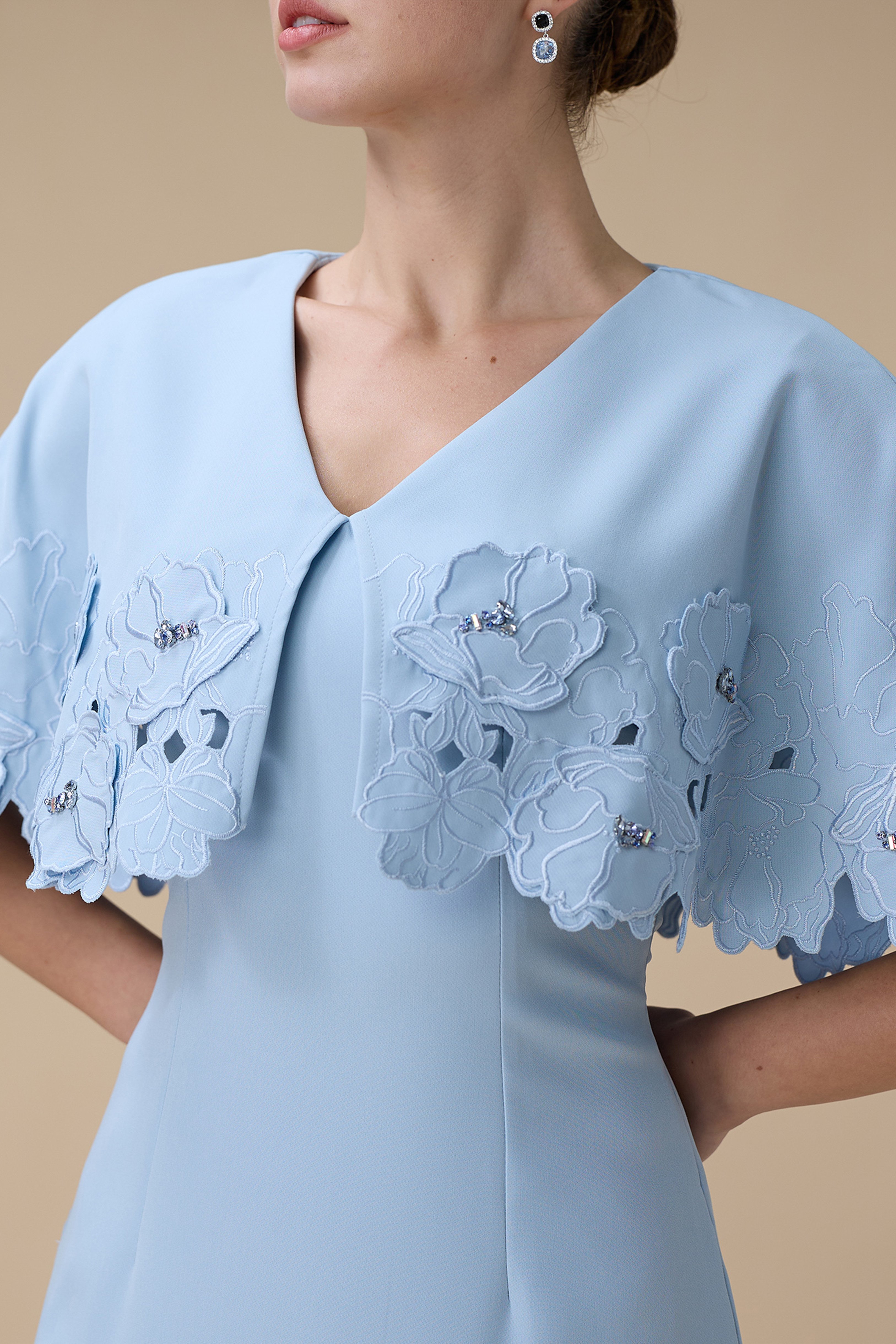 قصة أنيقة بتطريزات زهرية مع كسرات جانبية ناعمة وأكمام كاب
