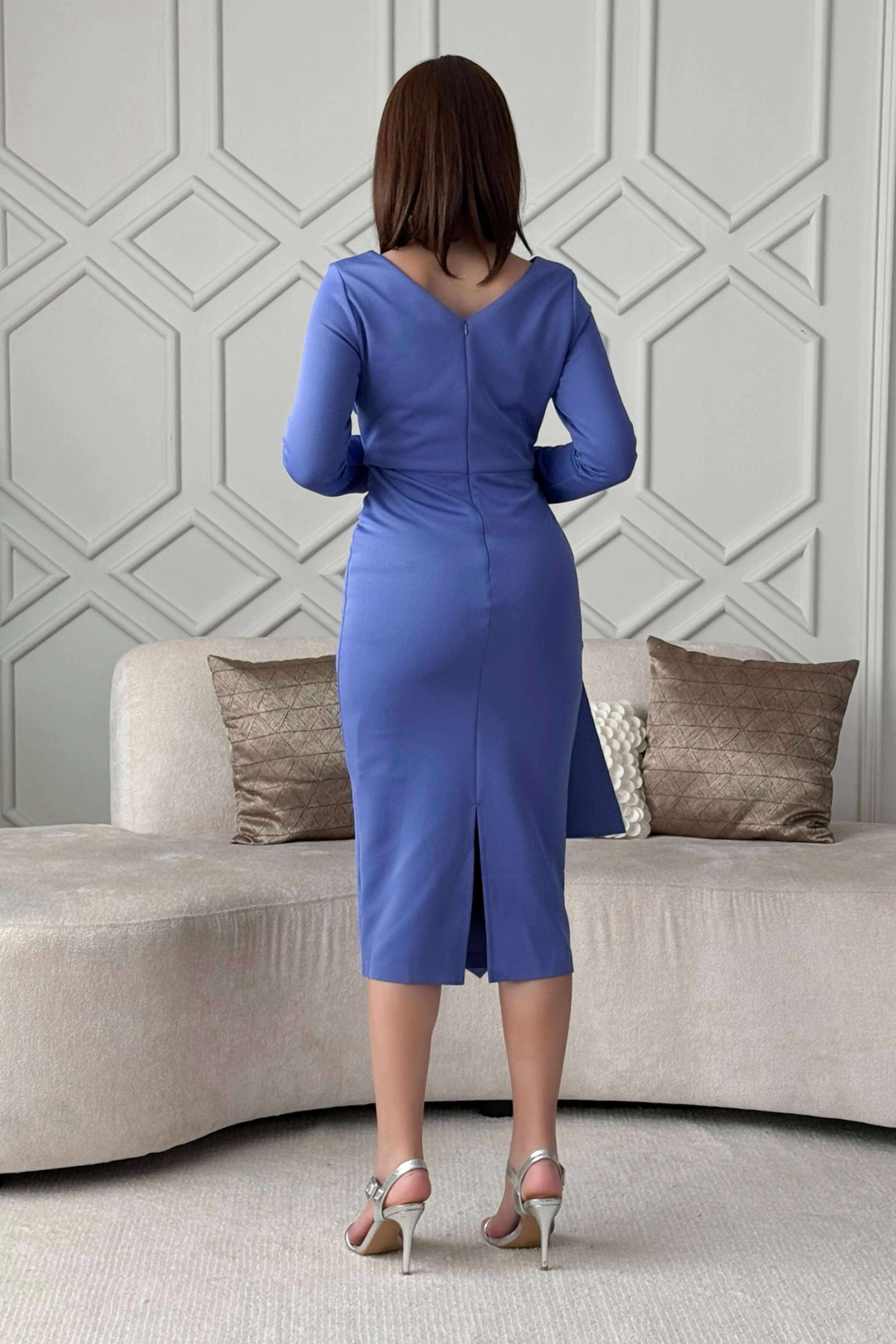 فستان ميدي درابيه مزين بالفصوص بأكمام طويلة
