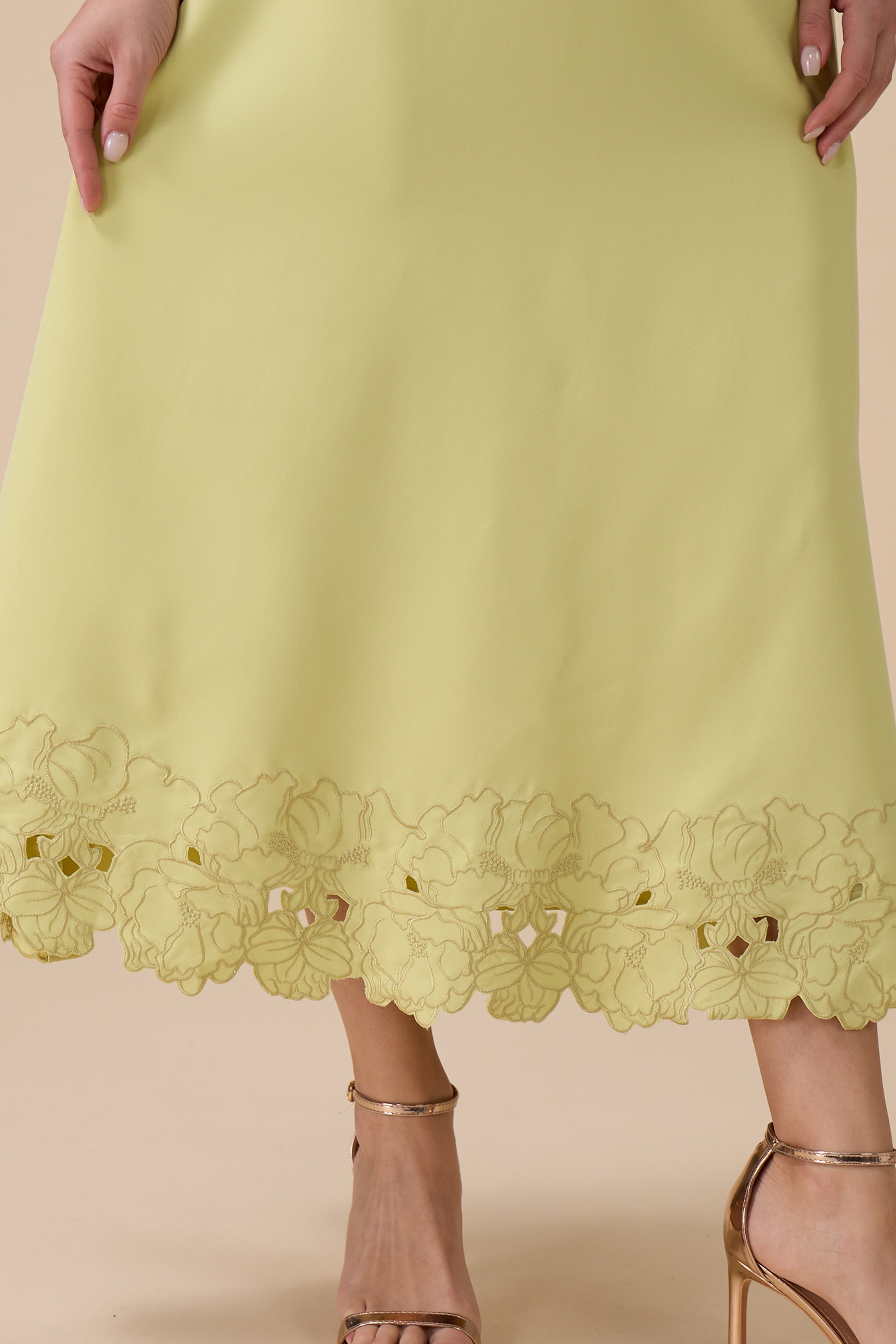 طقم تنورة ميدي أخضر فاتح بتفاصيل زهور ثلاثية الأبعاد