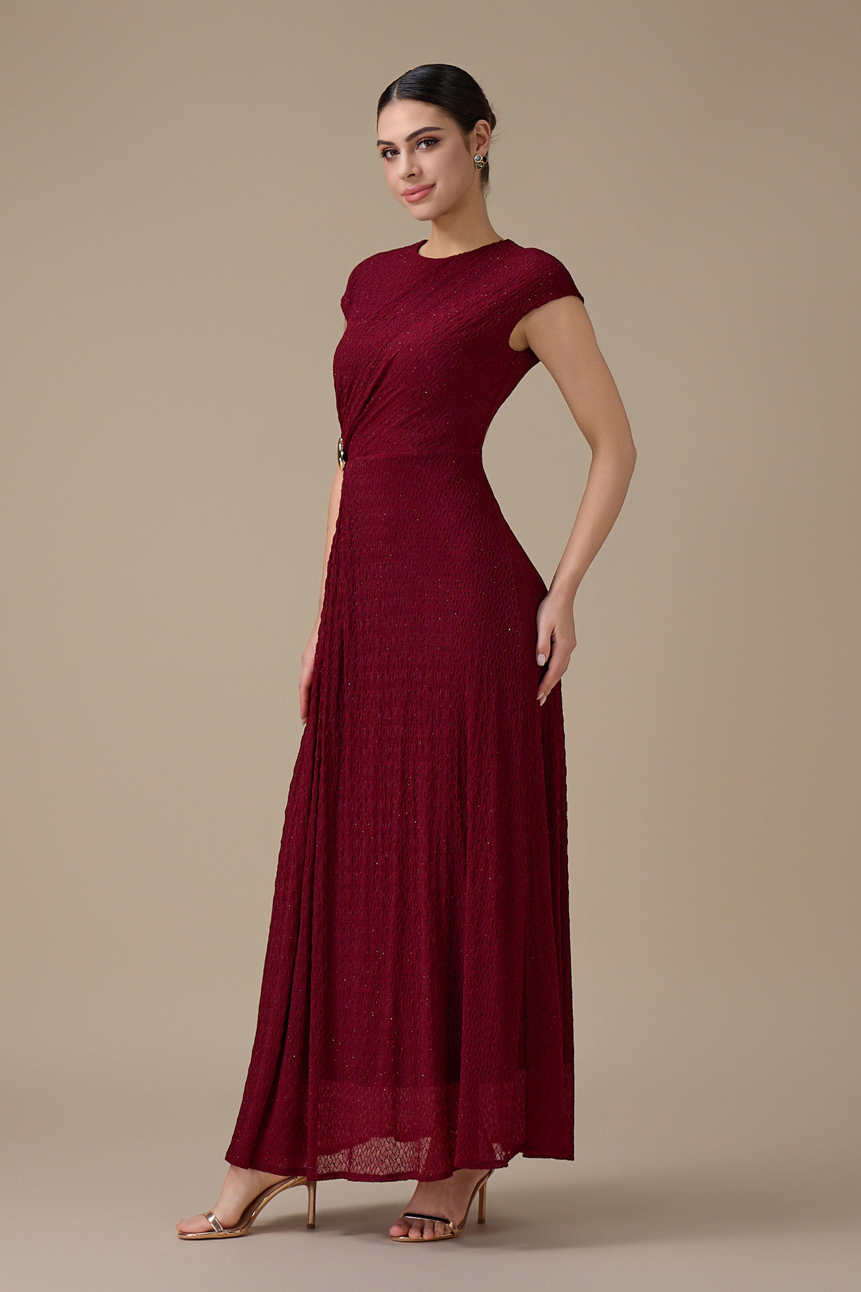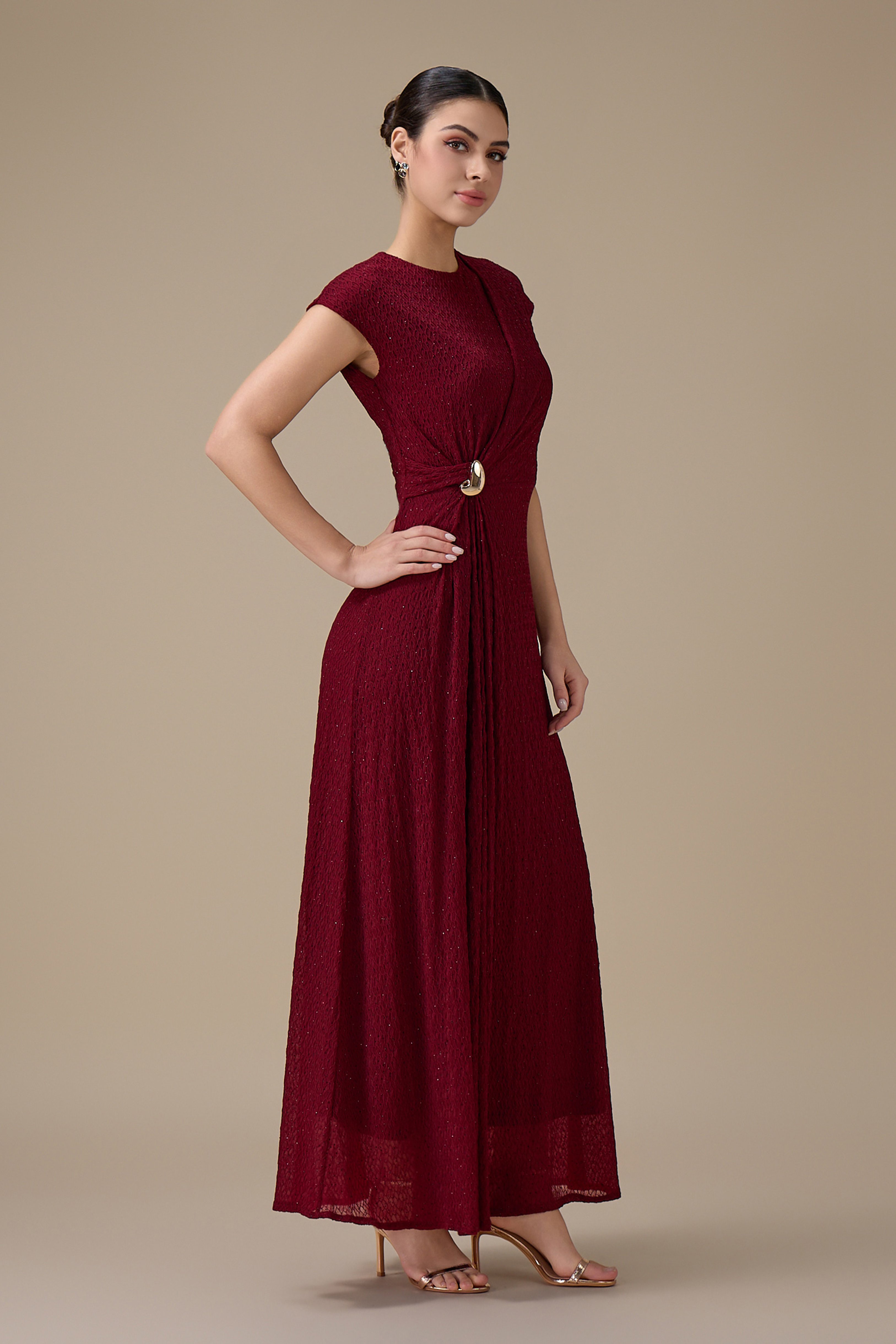 نوع التصميم: فستان طويل برغندي بتفصيلية جانبية