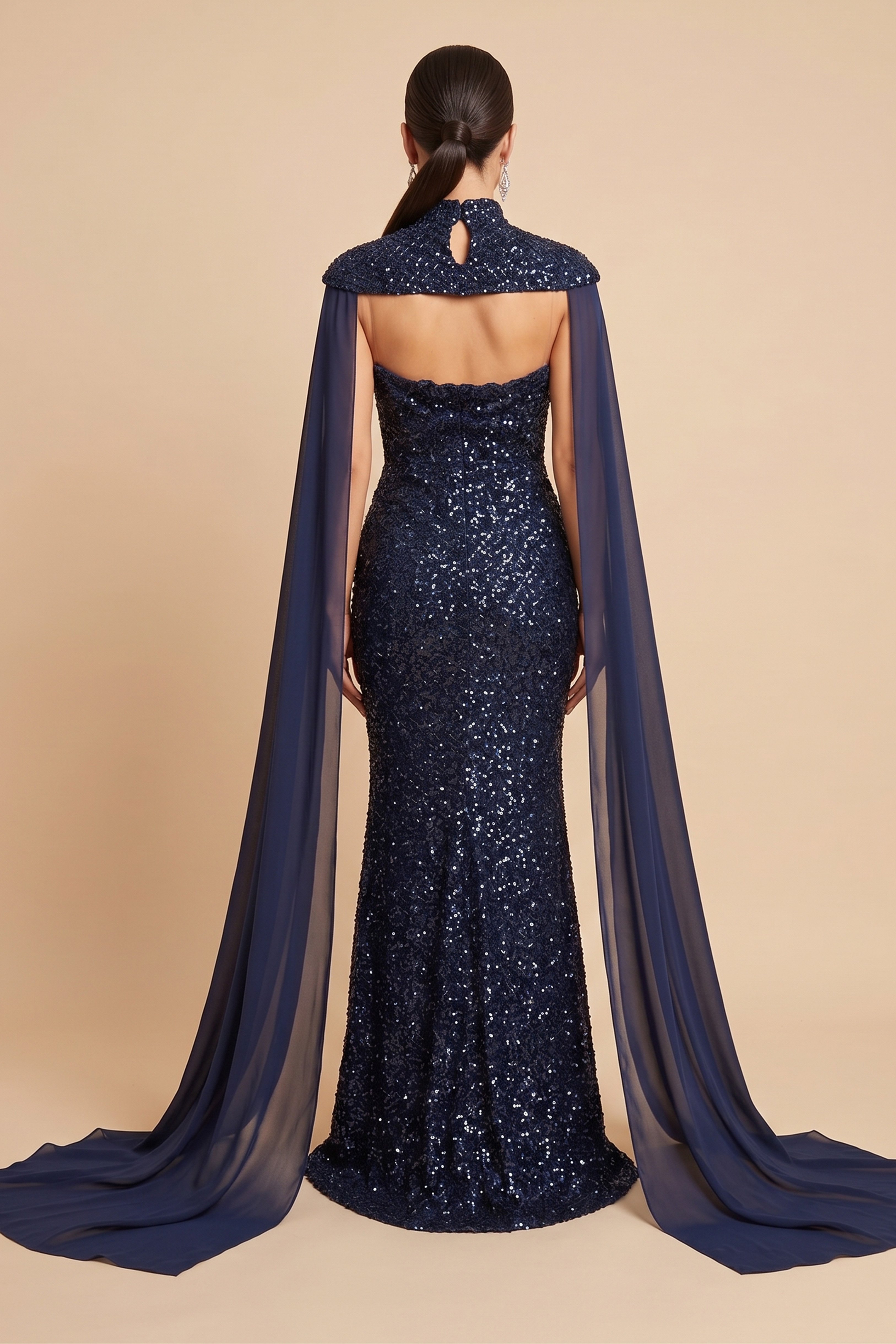 فستان سهرة طويل ترتر كحلي قطعتين بكاب شيفون منفصل