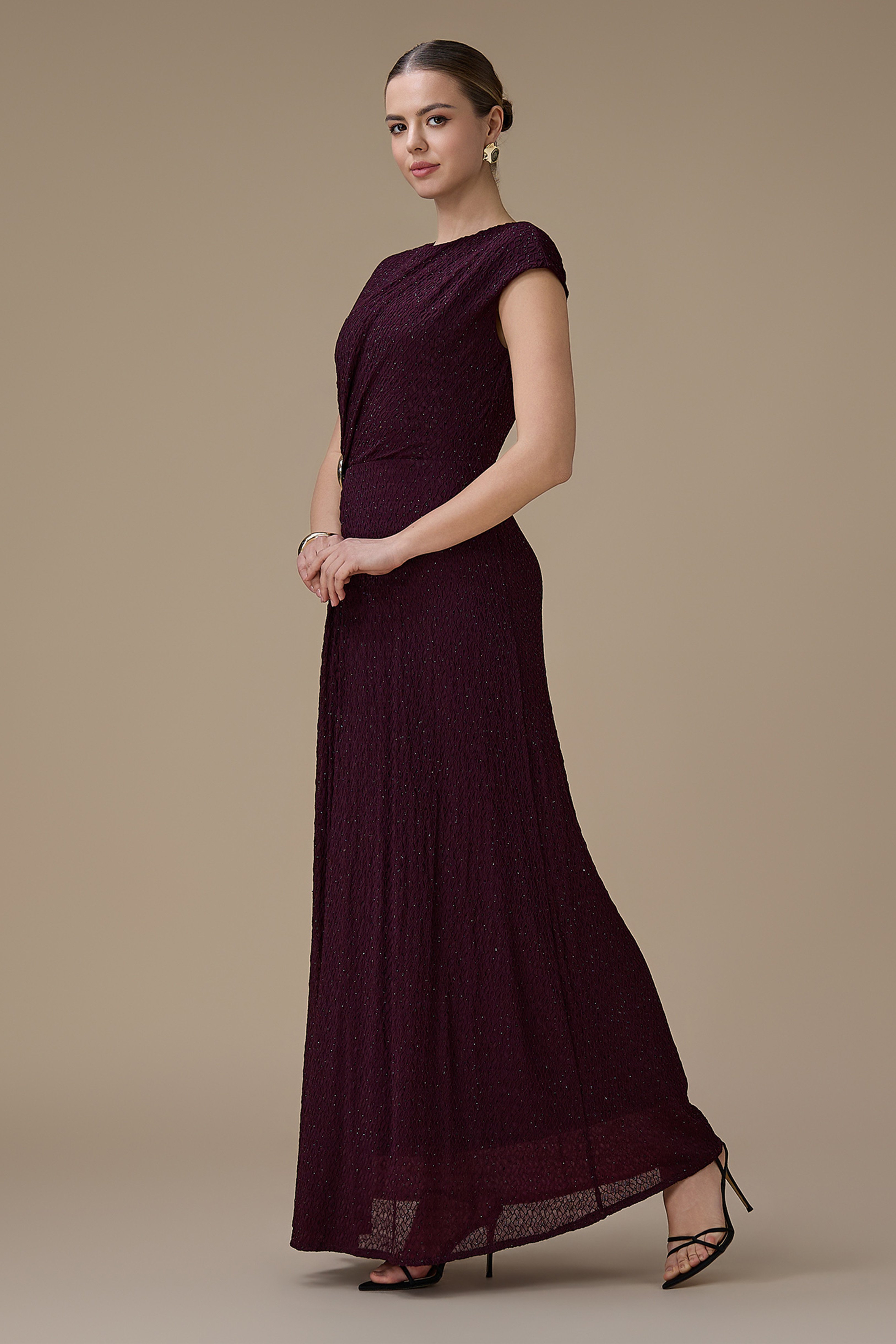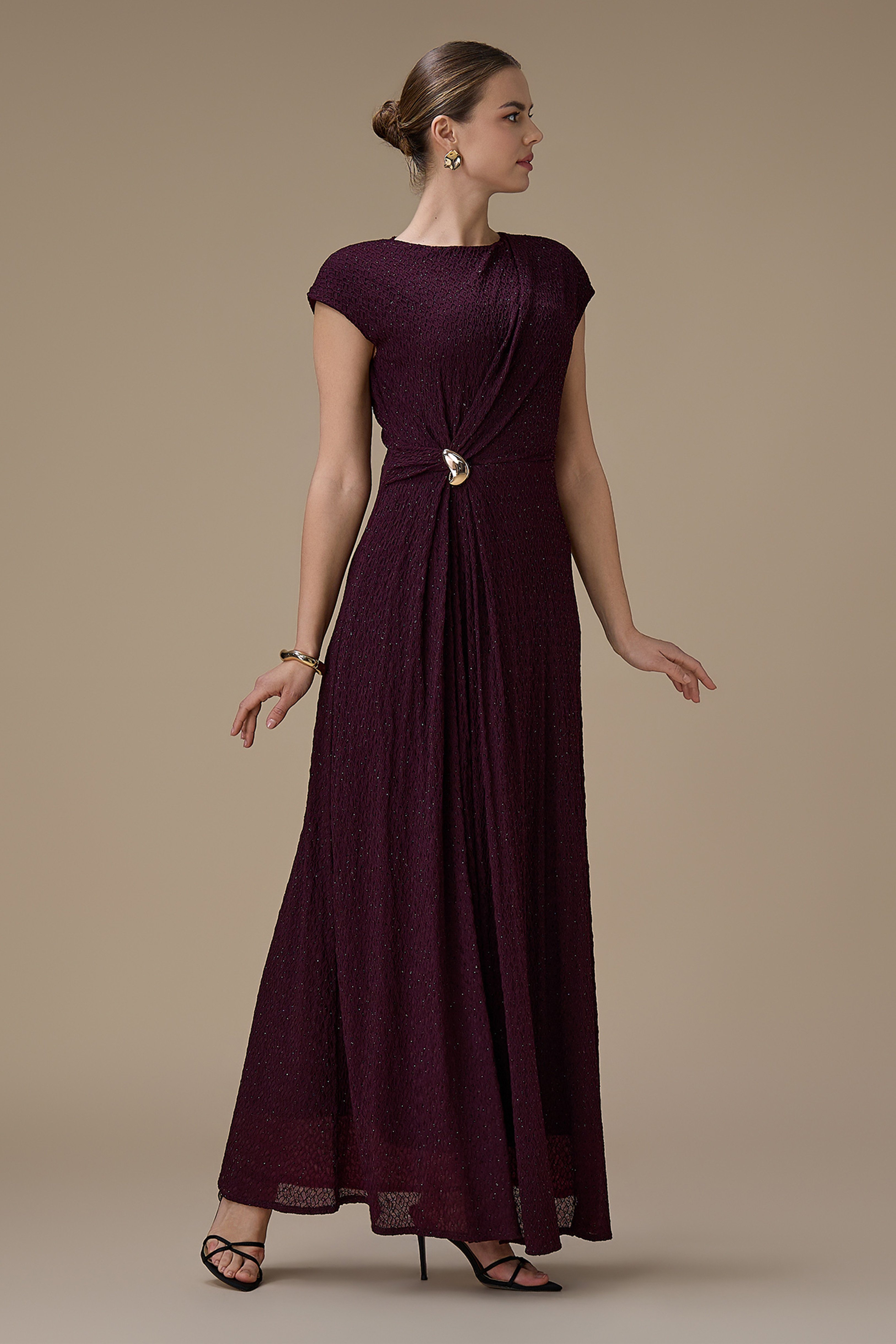 فستان طويل بنفسجي بتفصيلية جانبية