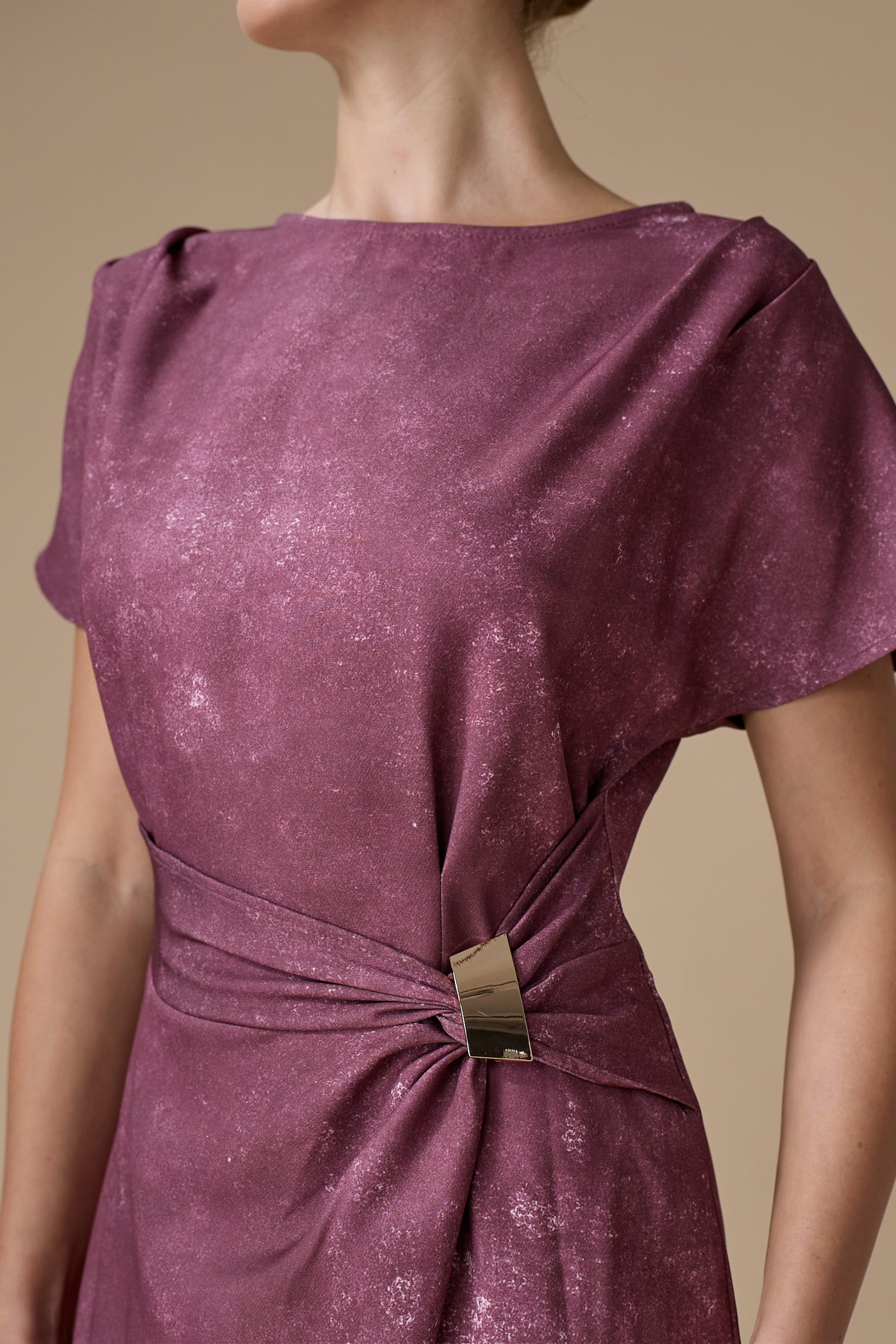 • القصة: ماكسي مستقيم مع درابيه جانبي ومشبك ذهبي
