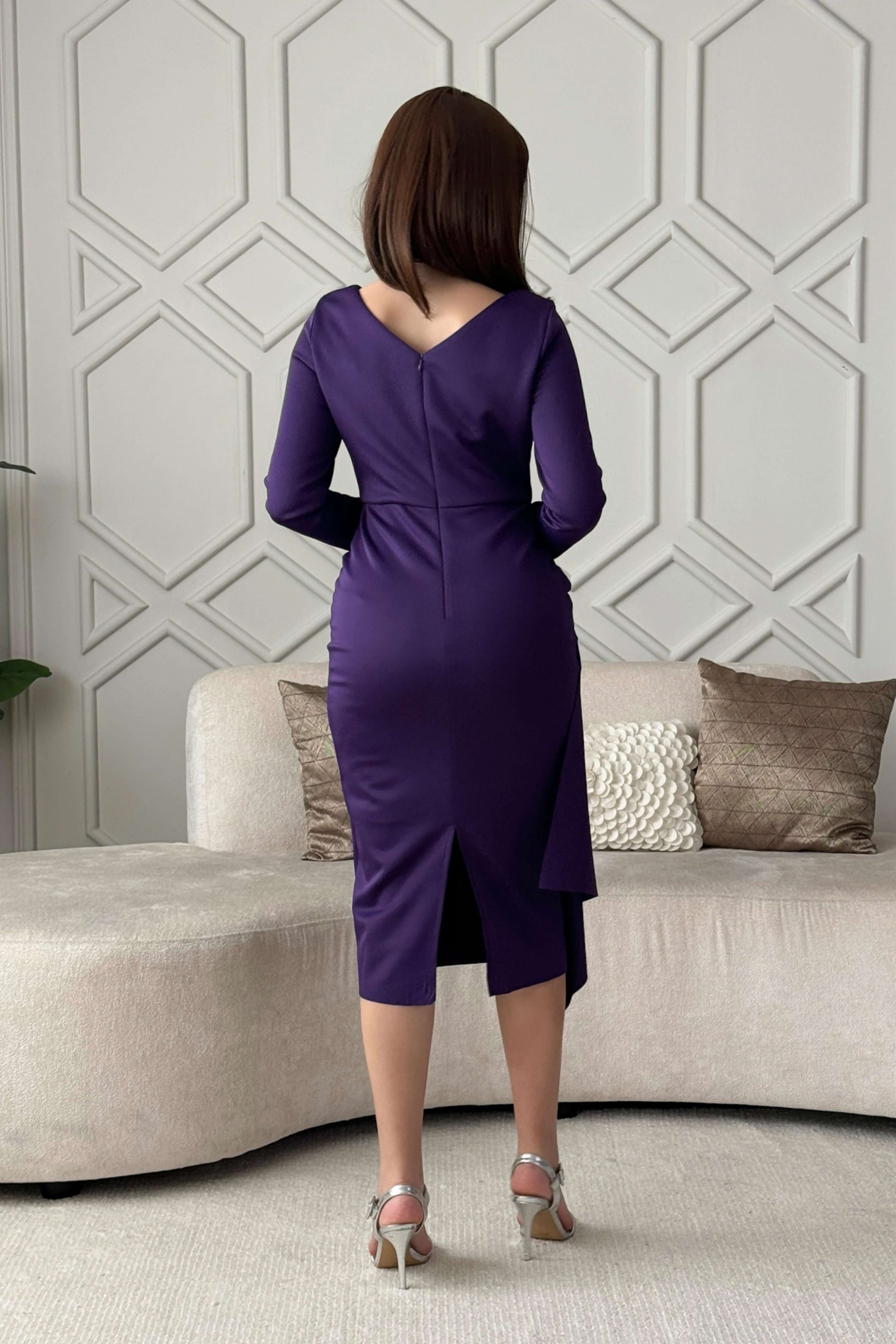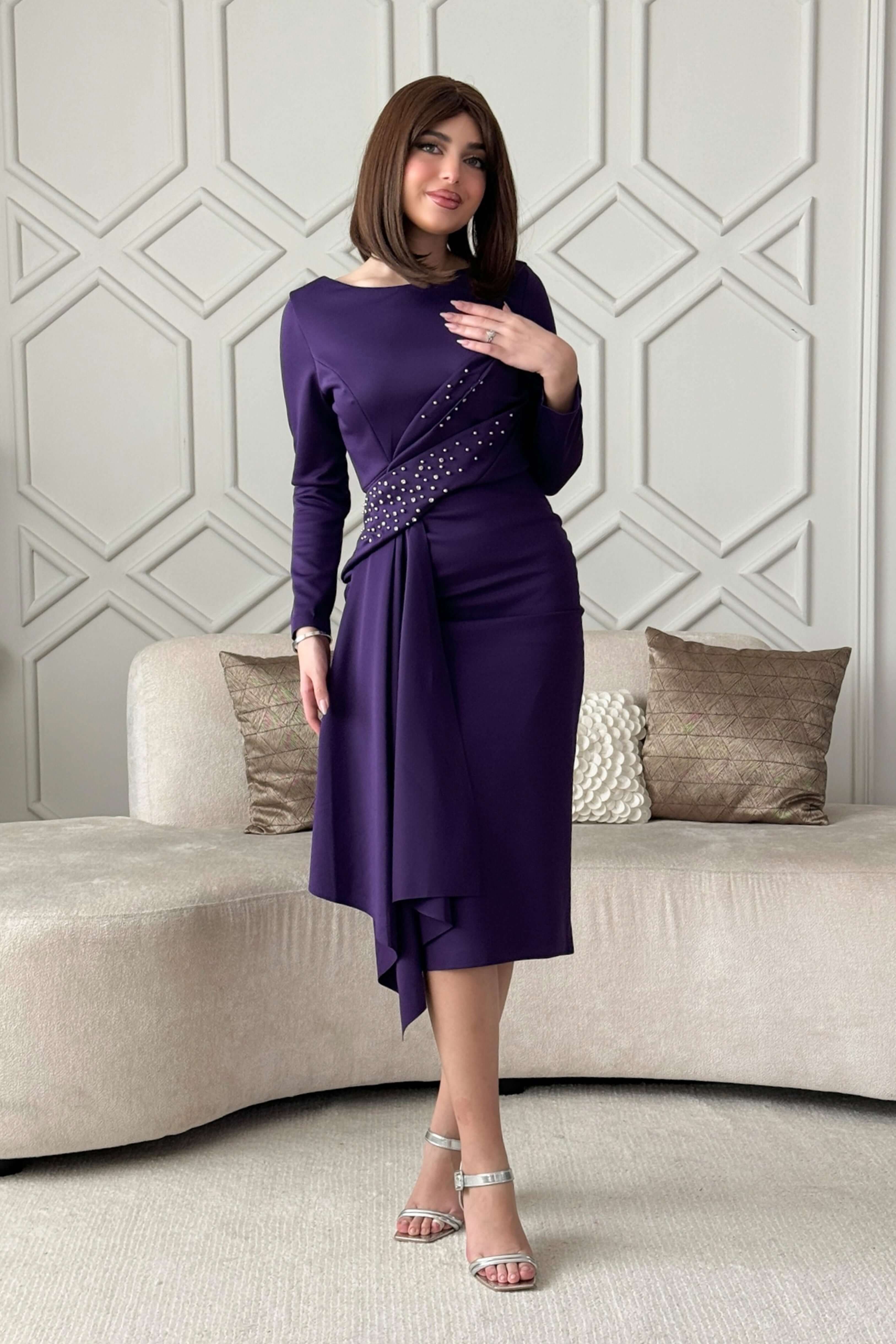 فستان ميدي درابيه مزين بالفصوص لون بنفسجي