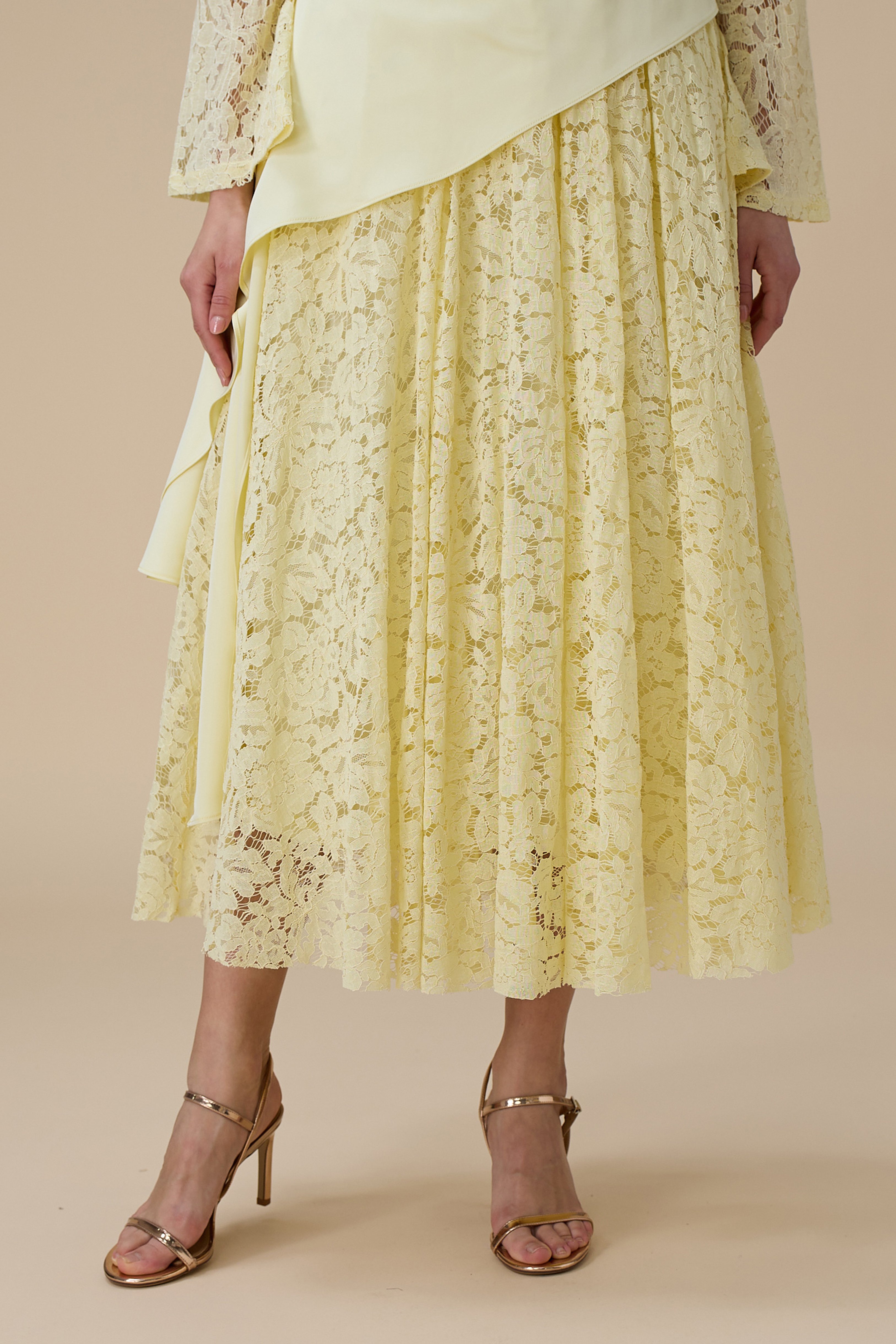 نوع التصميم: فستان ماكسي دانتيل أصفر فاتح