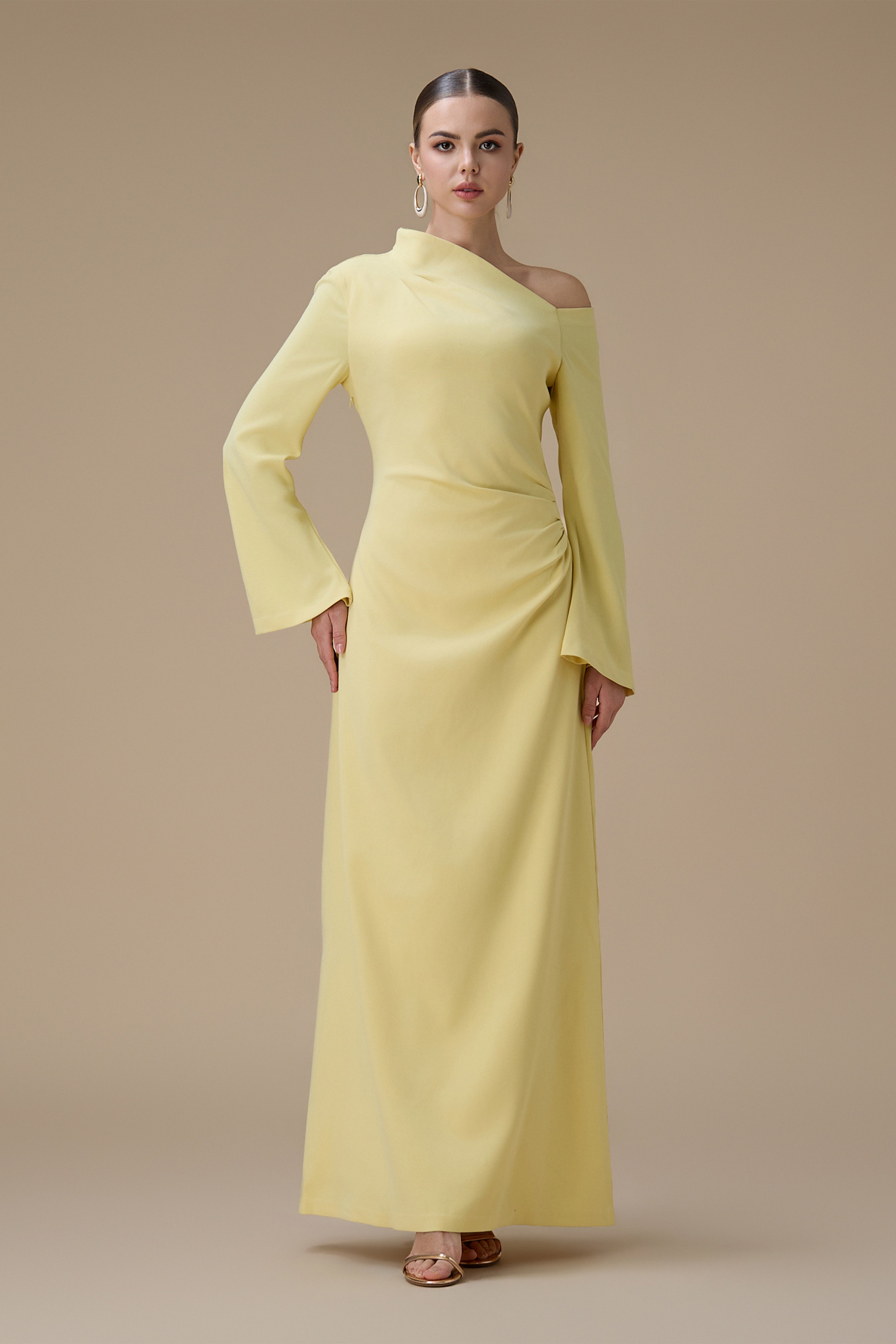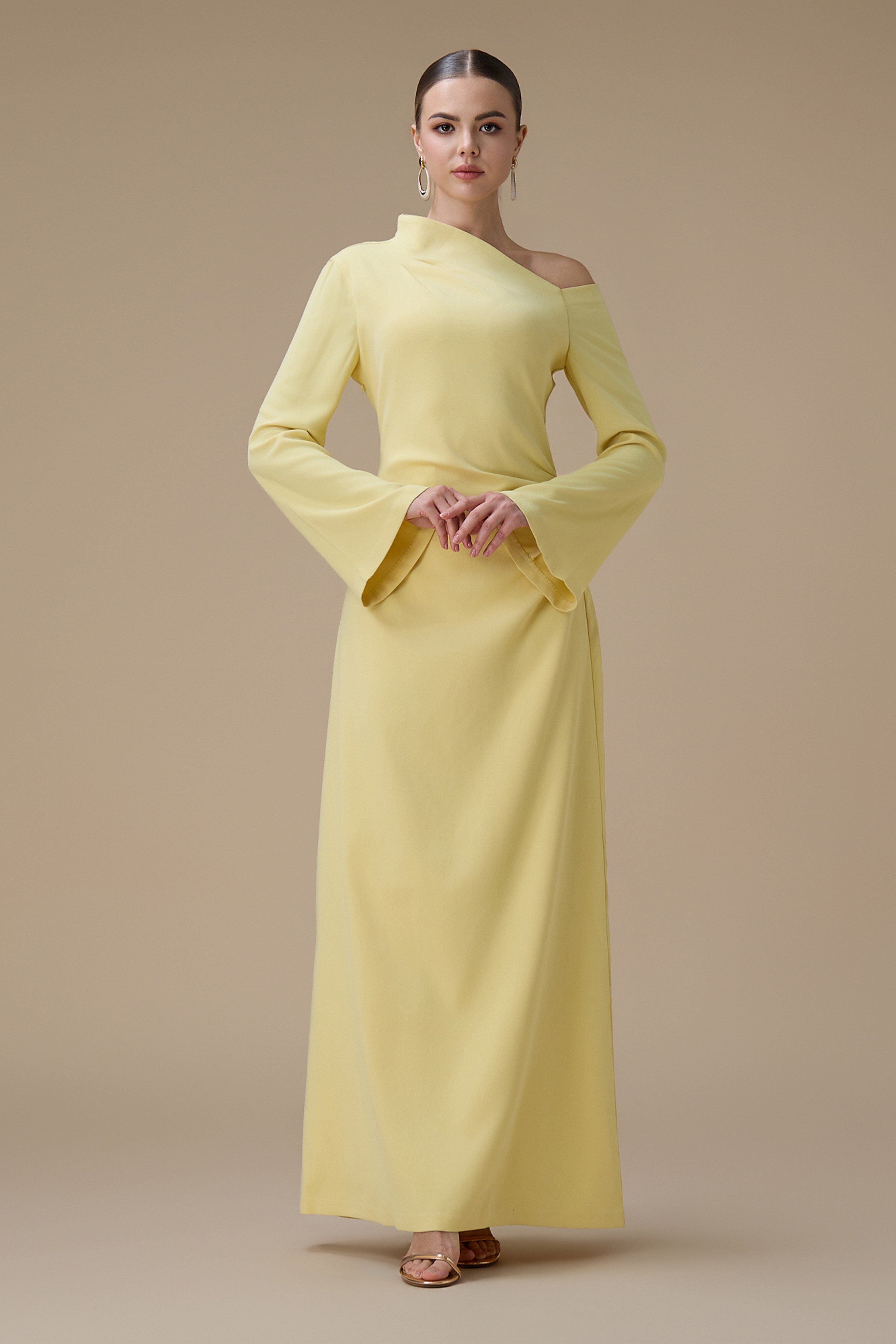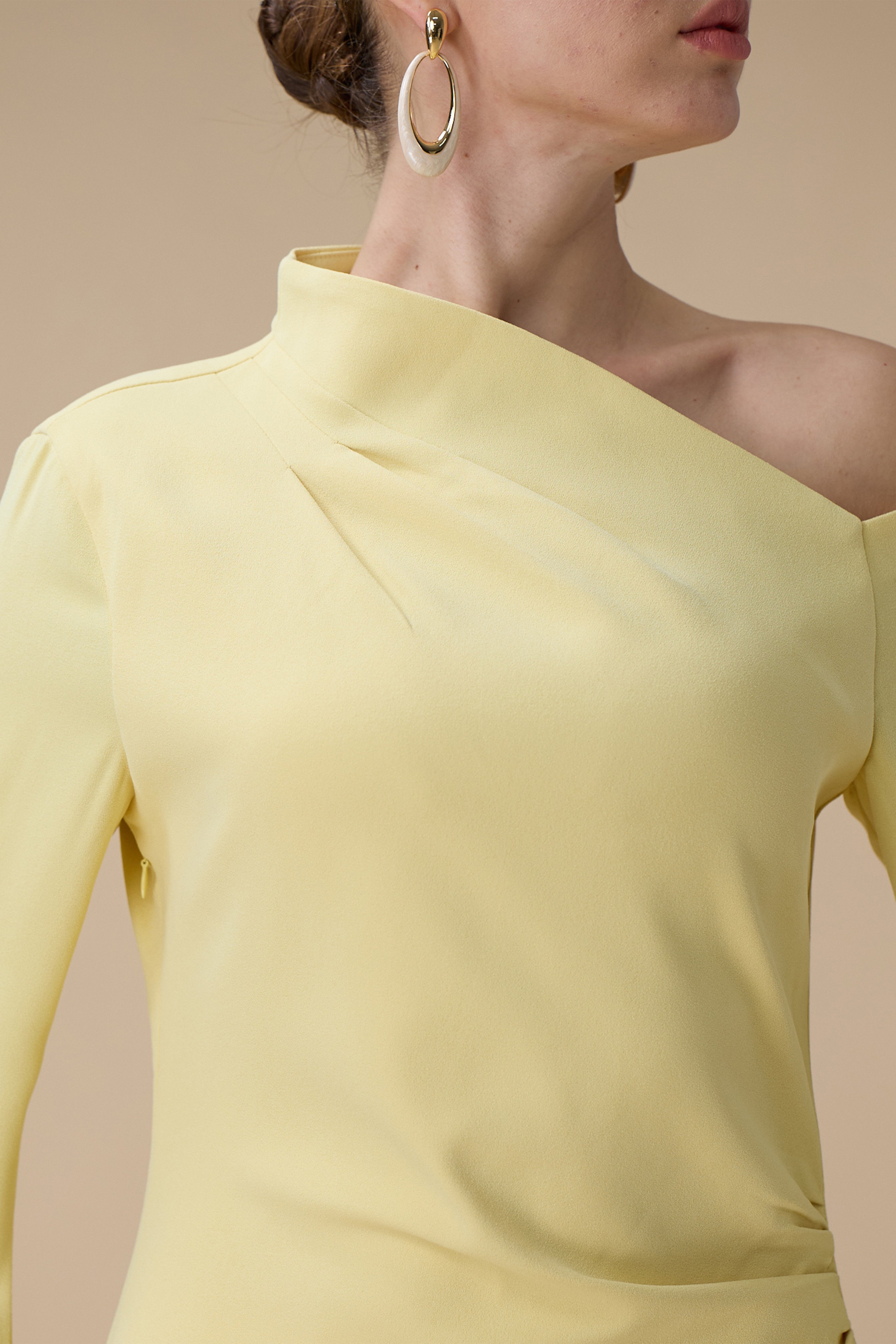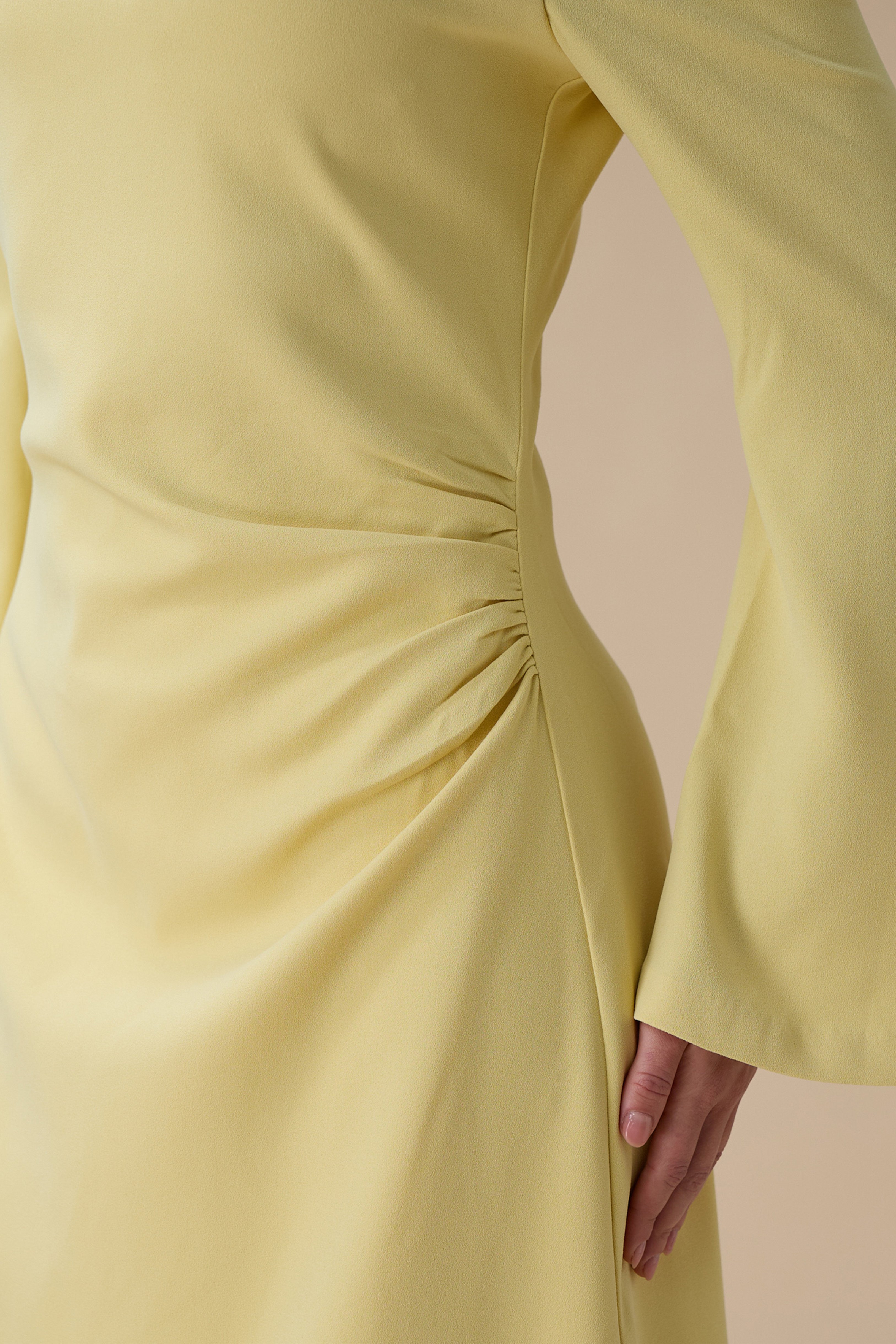 قصة أنيقة محددة بكسرات جانبية ناعمة مع أكمام طويلة