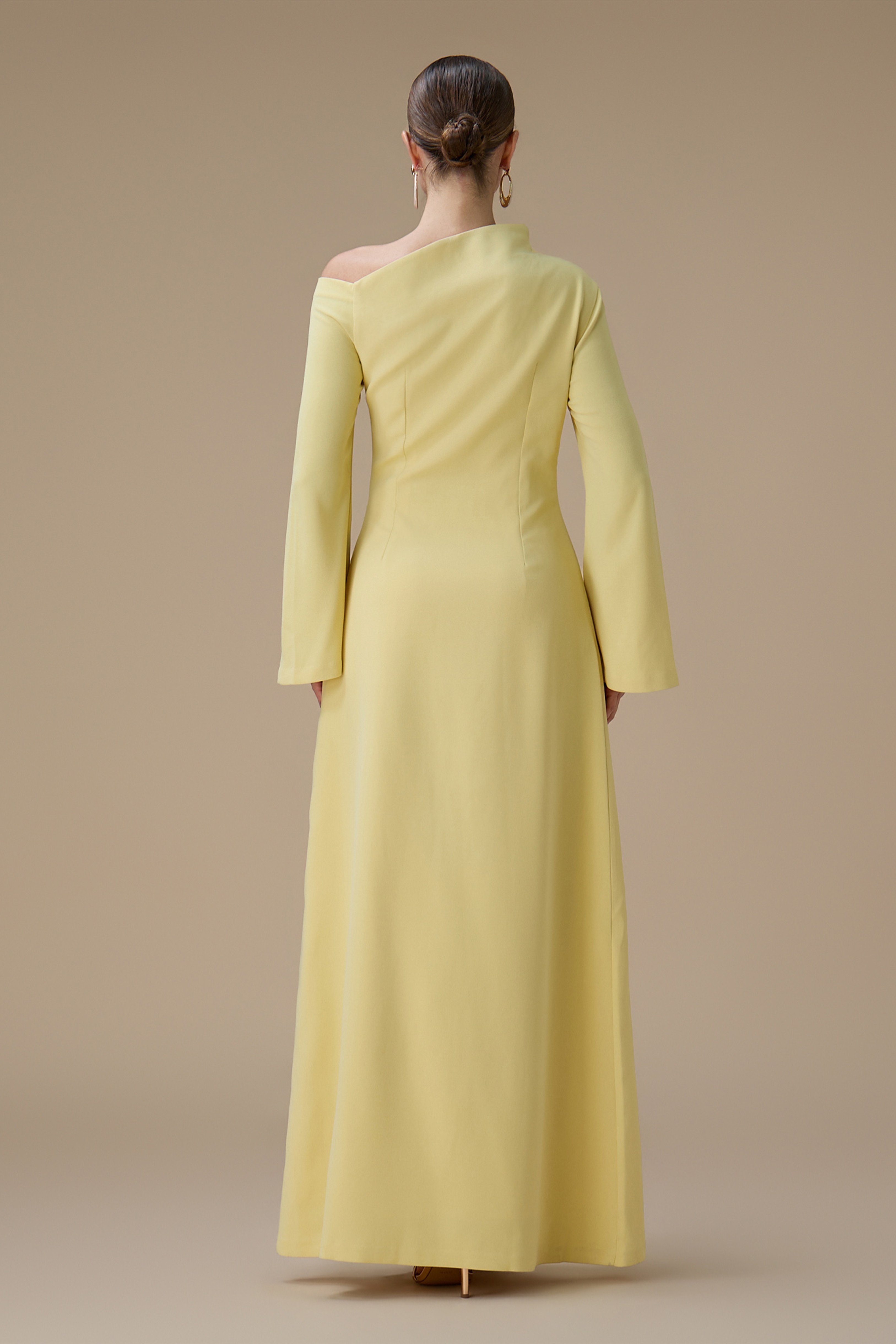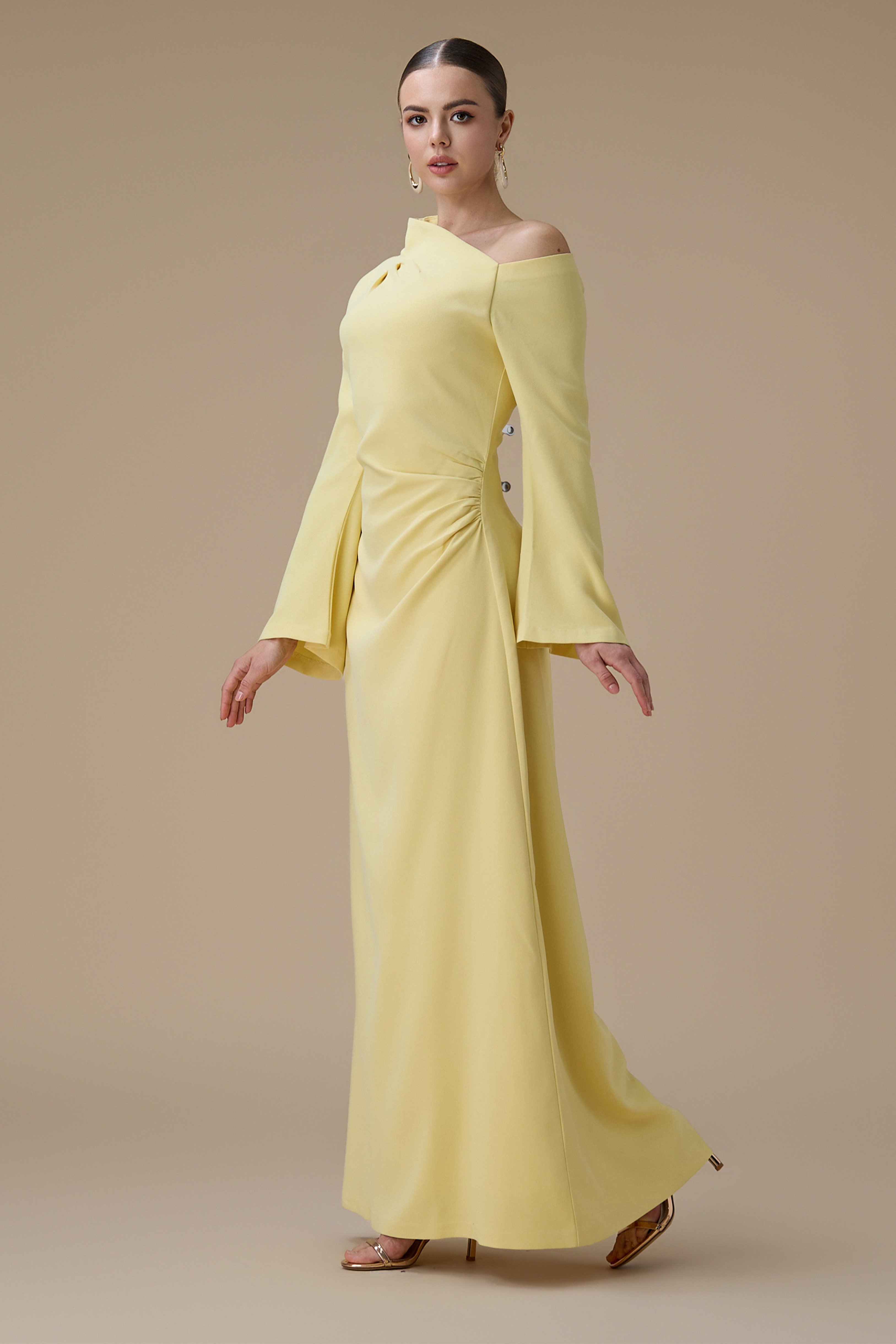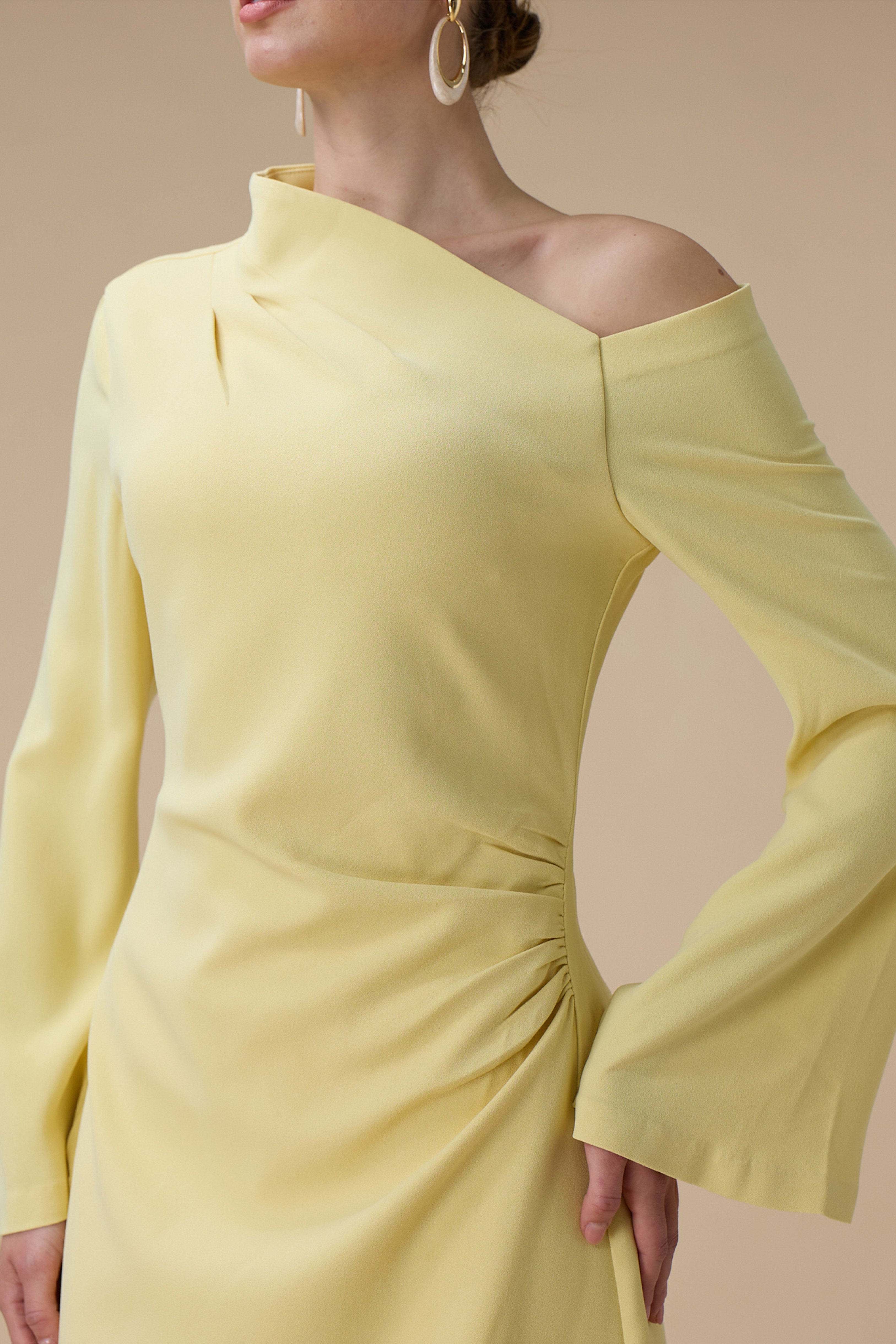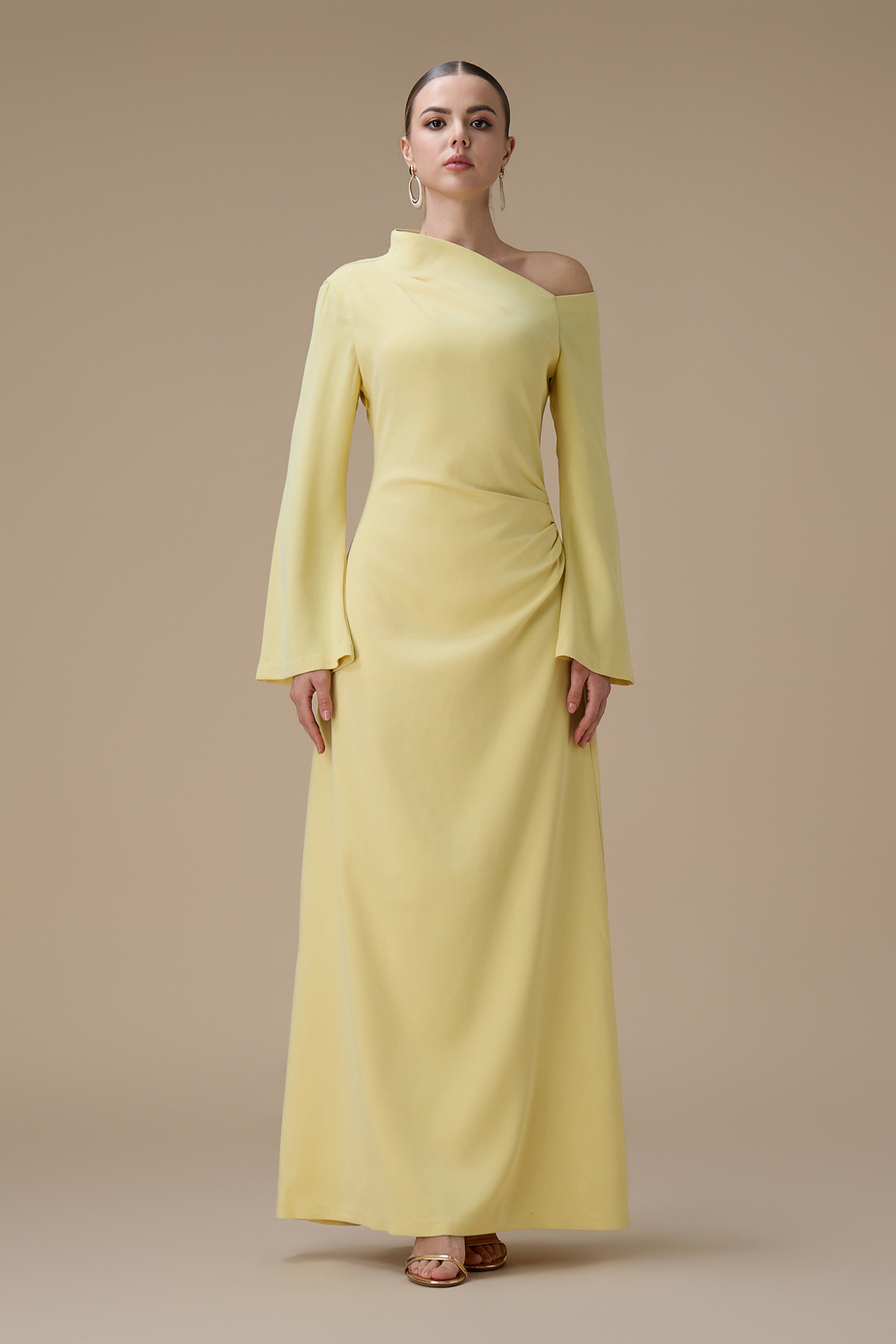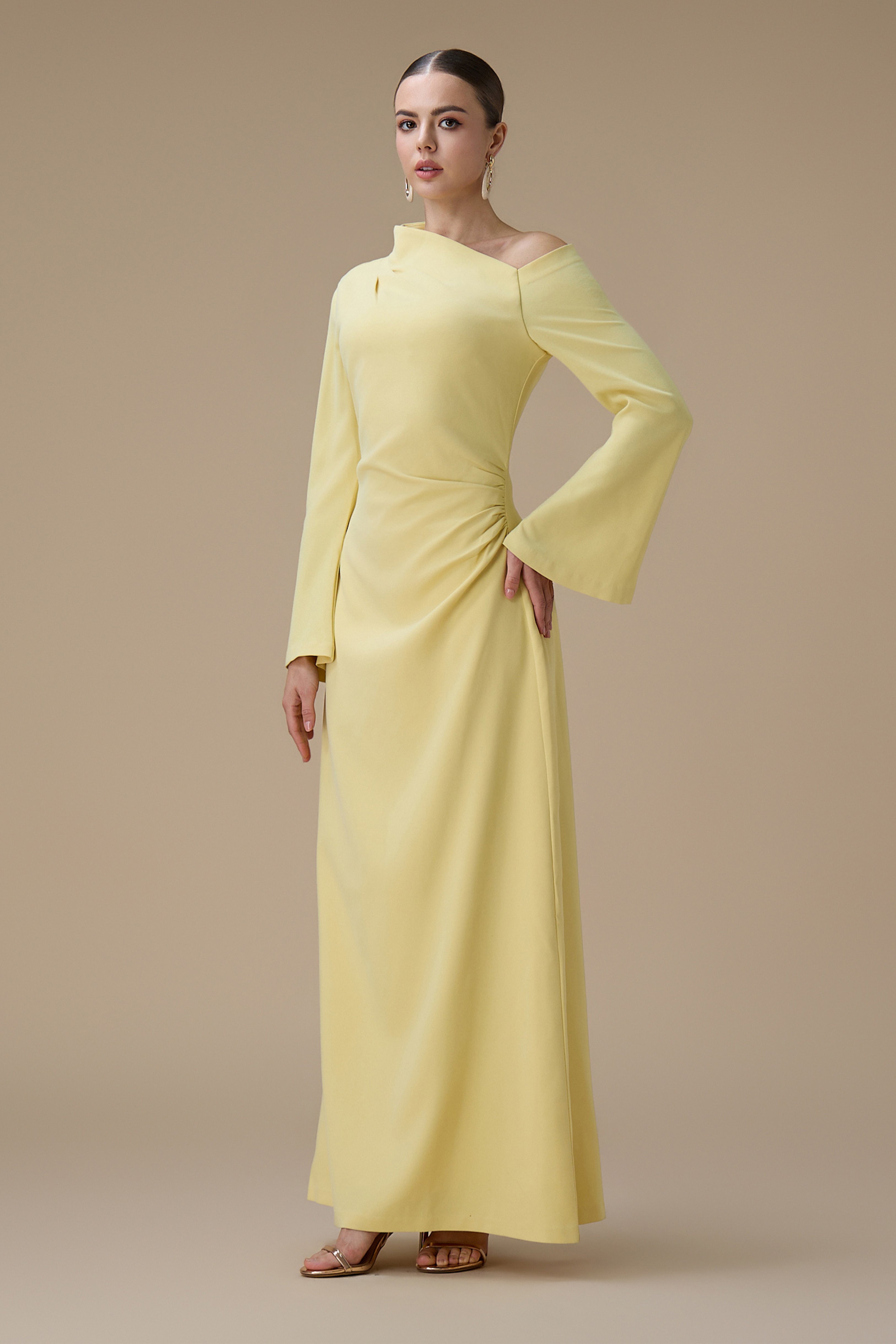قصة أنيقة محددة بكسرات جانبية ناعمة مع أكمام طويلة