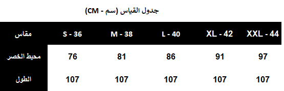 يُغسل ويُكوى بالبخار بدرجة حرارة منخفضة (40%) ويُجفف بالتعليق