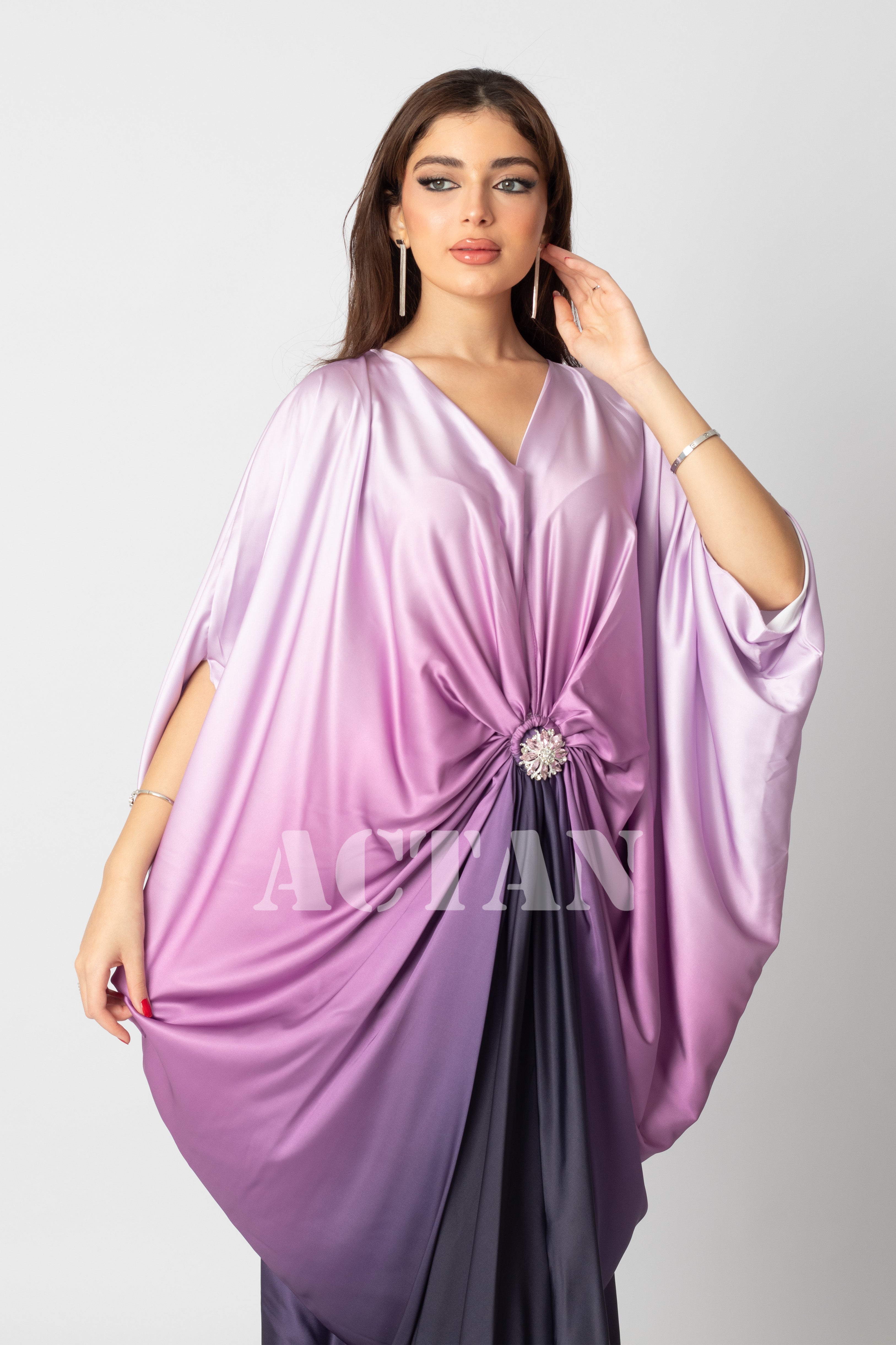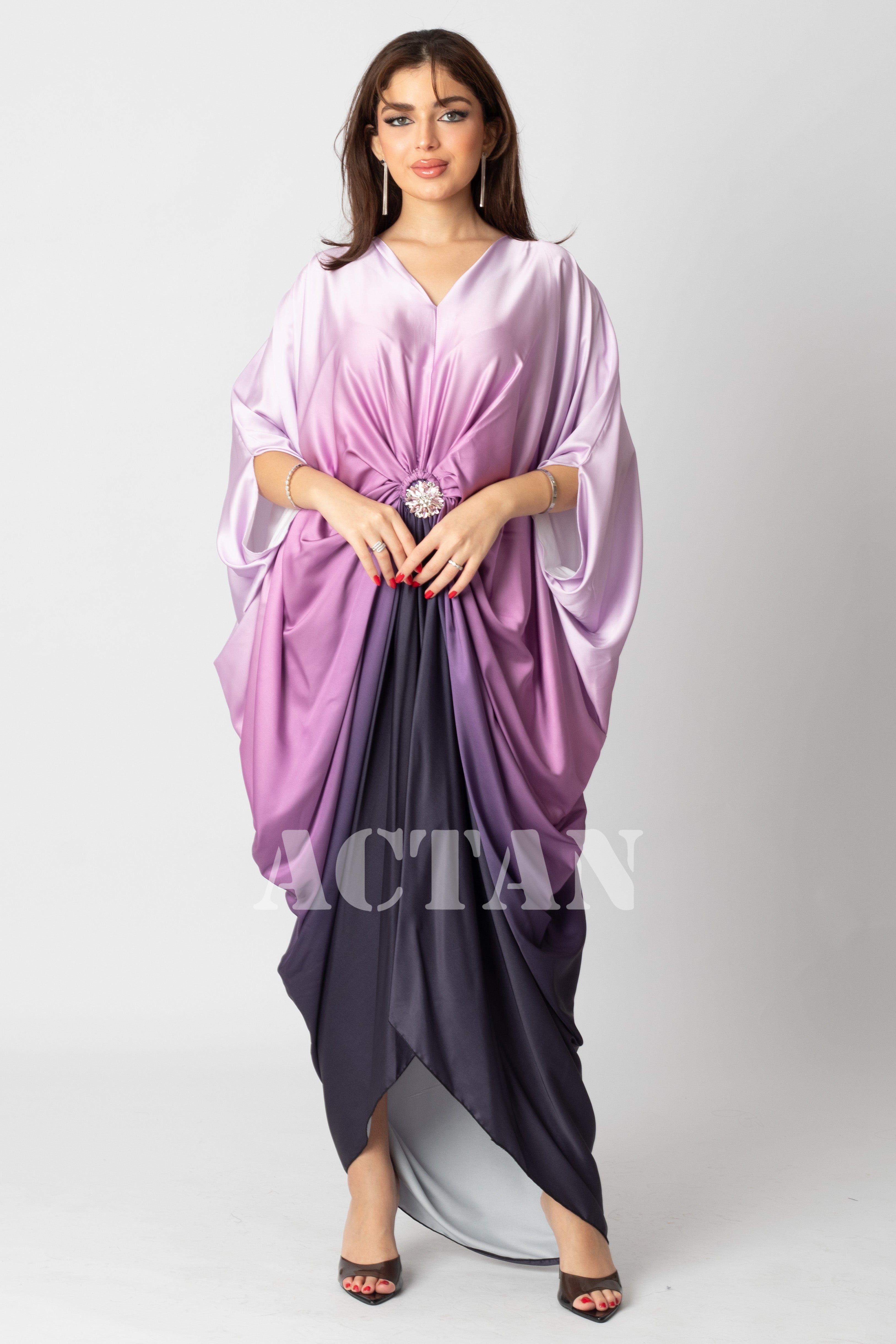 Design type Butterfly design satin jalabiya Story type Butterfly design satin kaftan with asymmetrical length, long sleeves and a v-neck The occasion Public outing or special occasions waist wide collar v sleeves long stretching Non-stretchable Material satin Care instructions Machine wash and iron with steam at low temperature (40%) and hang dry.
