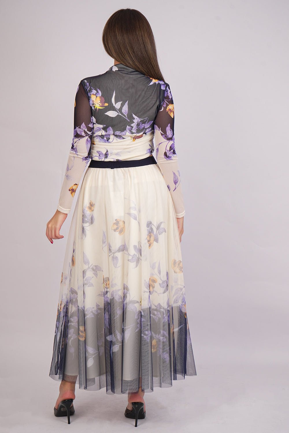 Purple Floral Print Tulle Skirt and Blouse Set