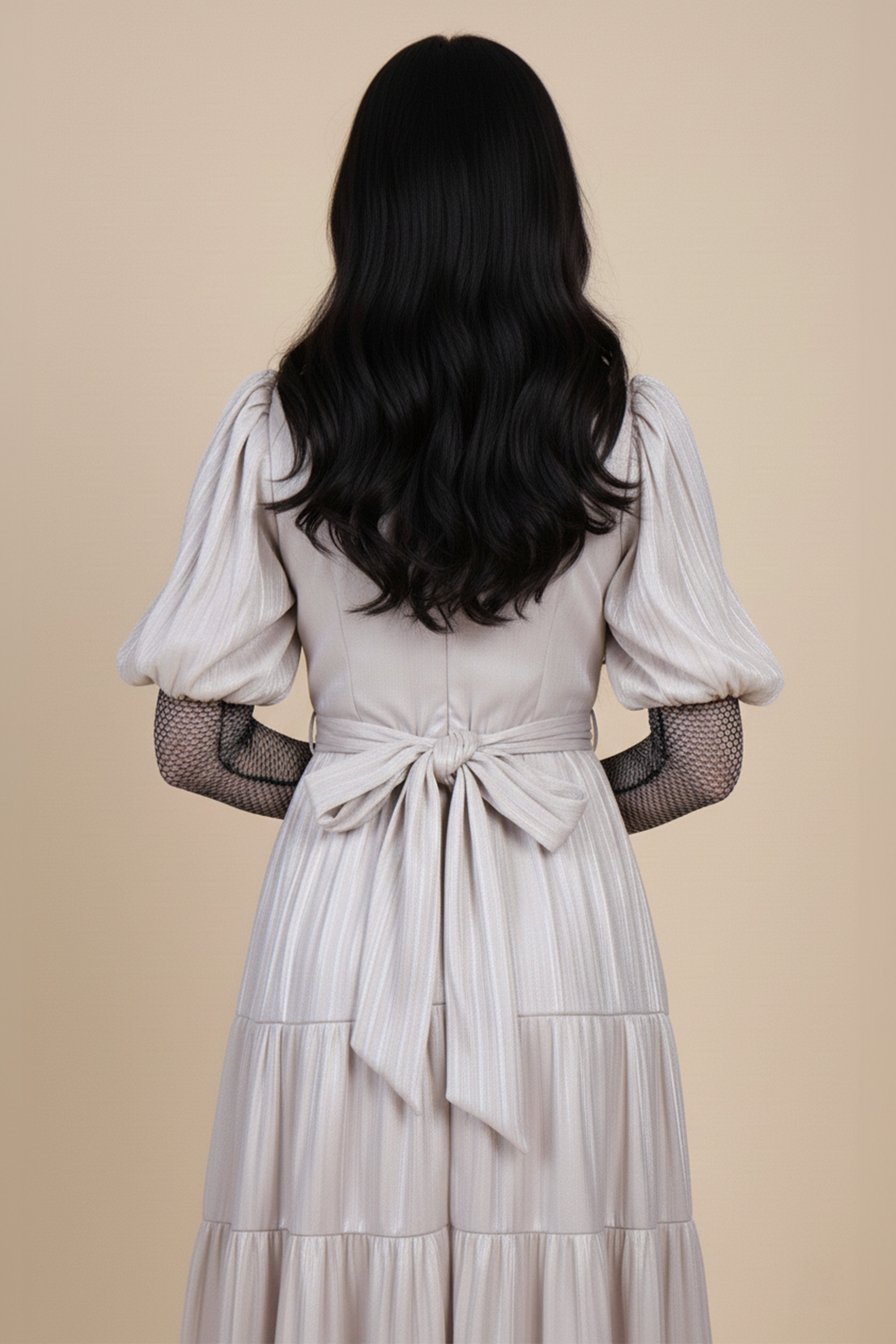 Beige mesh inner midi dress