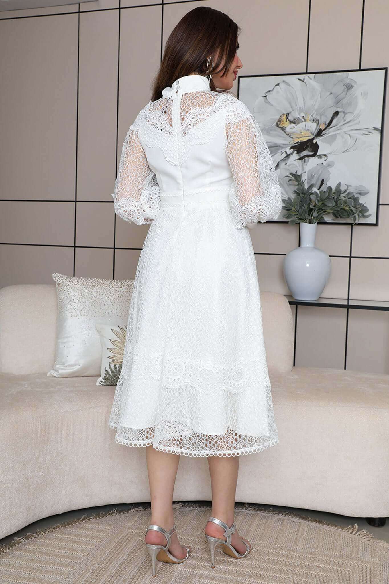 Elegant white lace midi dress