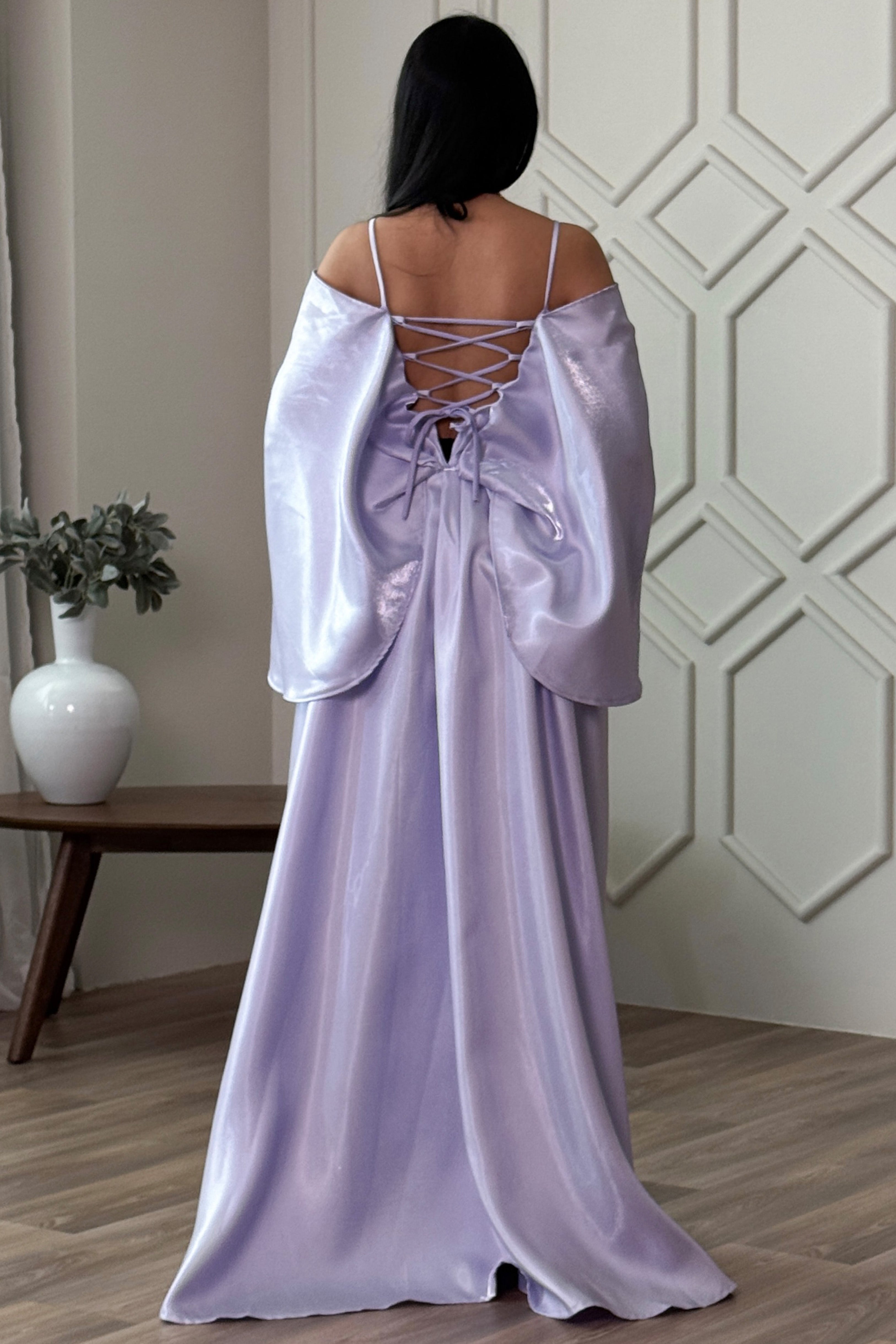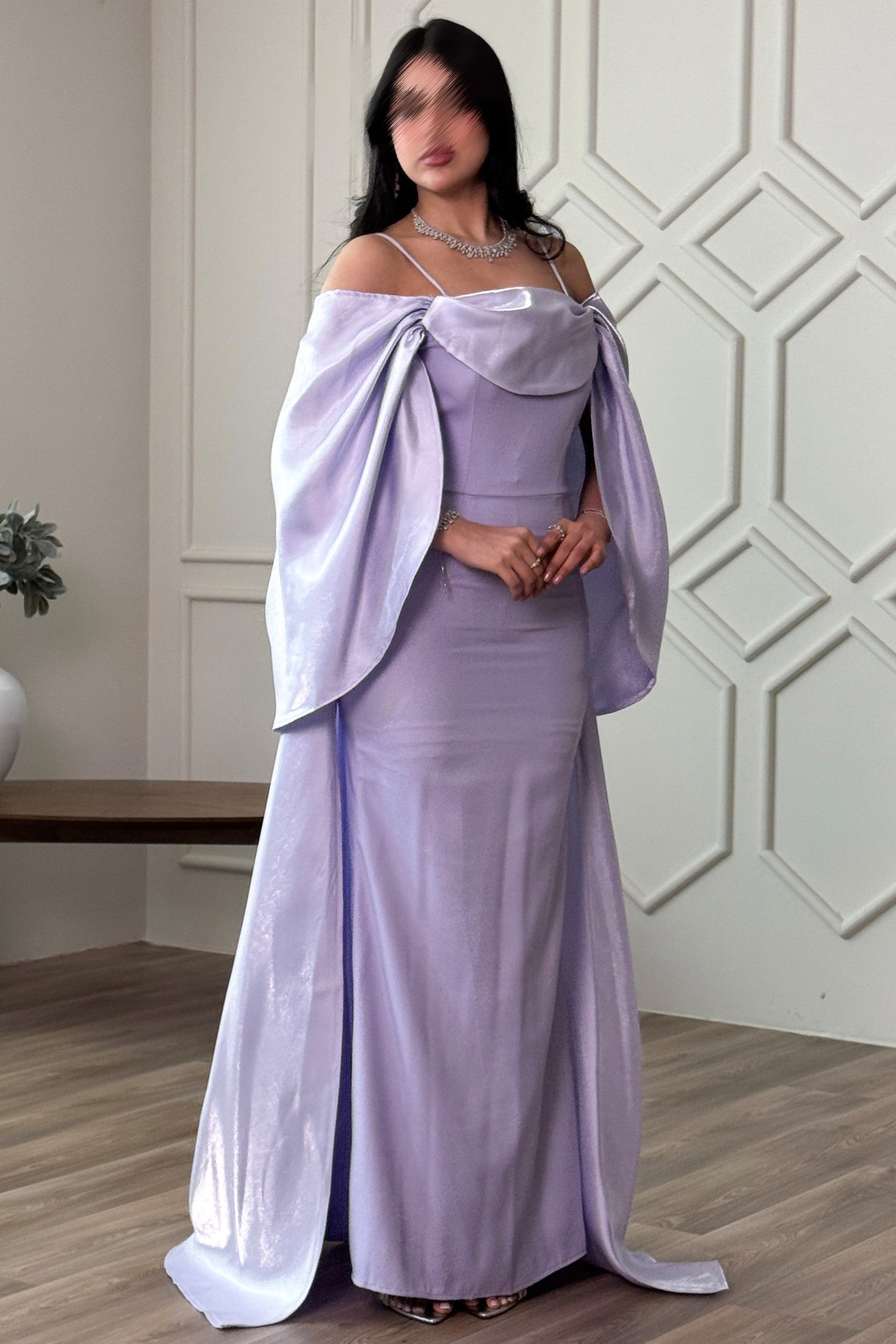 نوع التصميم فستان ضيق اوف شولدر بأكمام انسيابية نوع القصة فستان ضيق اوف شولدر بأكمام انسيابية طويلة وذيل