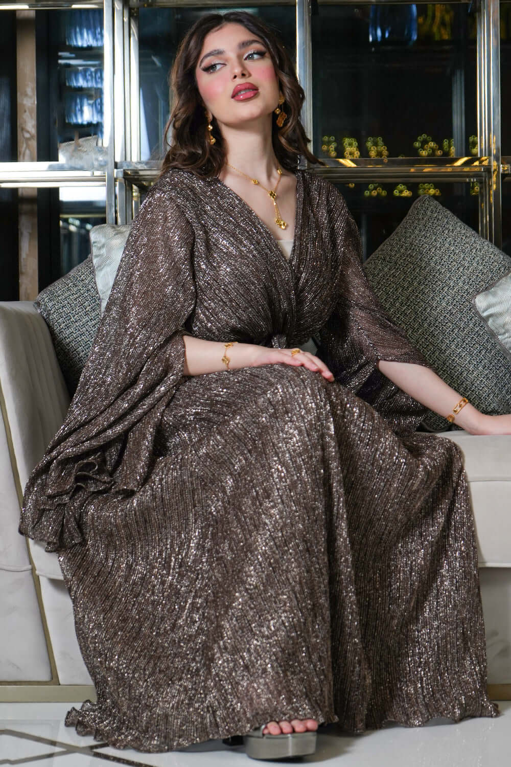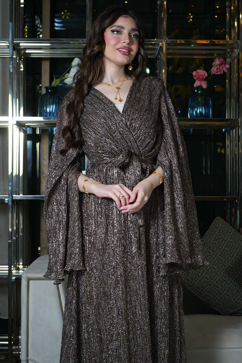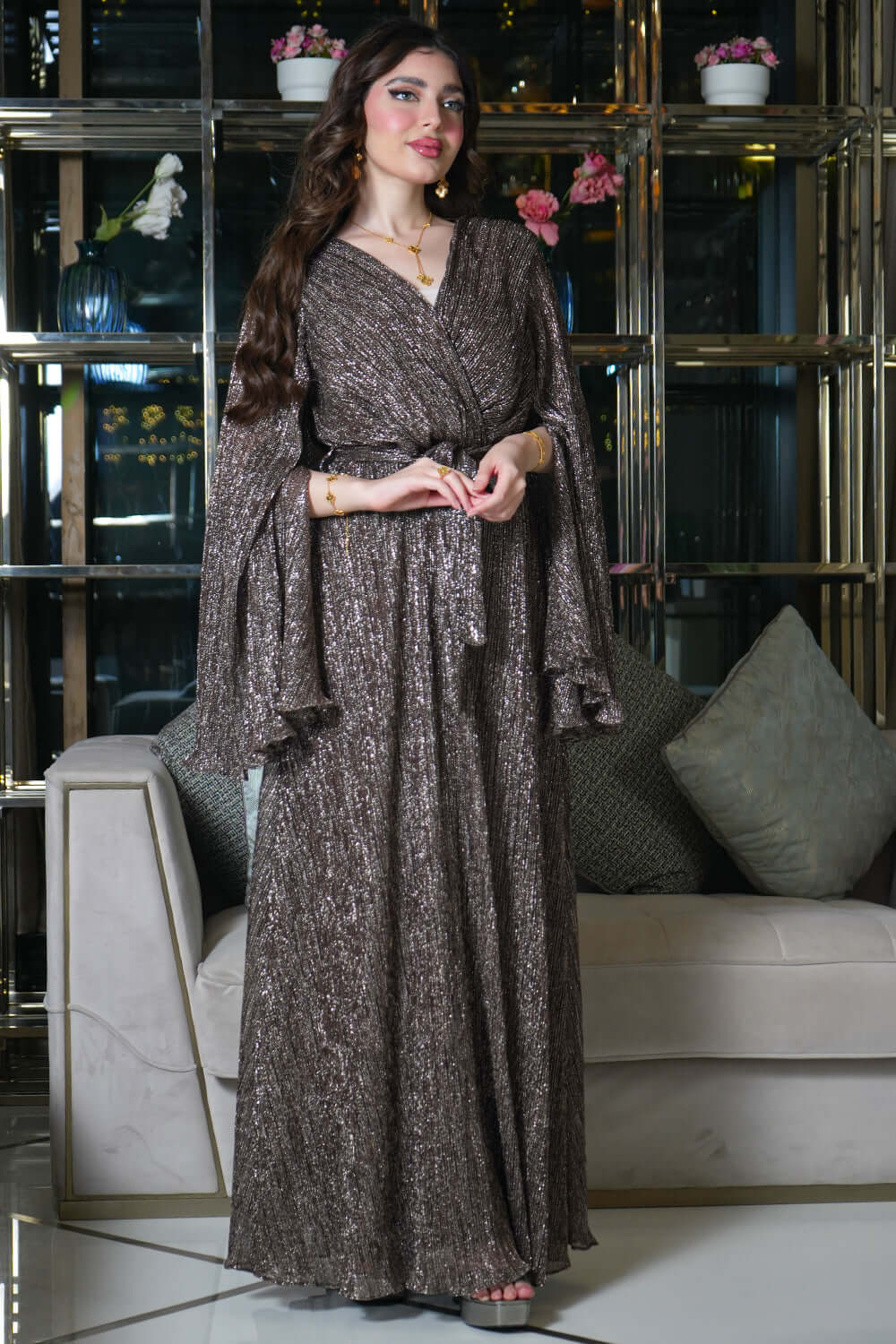نوع التصميم فستان طويل بلمعة برباط عالخصر نوع القصة فستان طويل بلمعة برباط عالخصر بأكمام طويلة وياقة v المناسبه خروج عام او مناسابات خاصة الخصر ضيق الياقه v الاكمام طويلة التمدد متوسط التمدد
