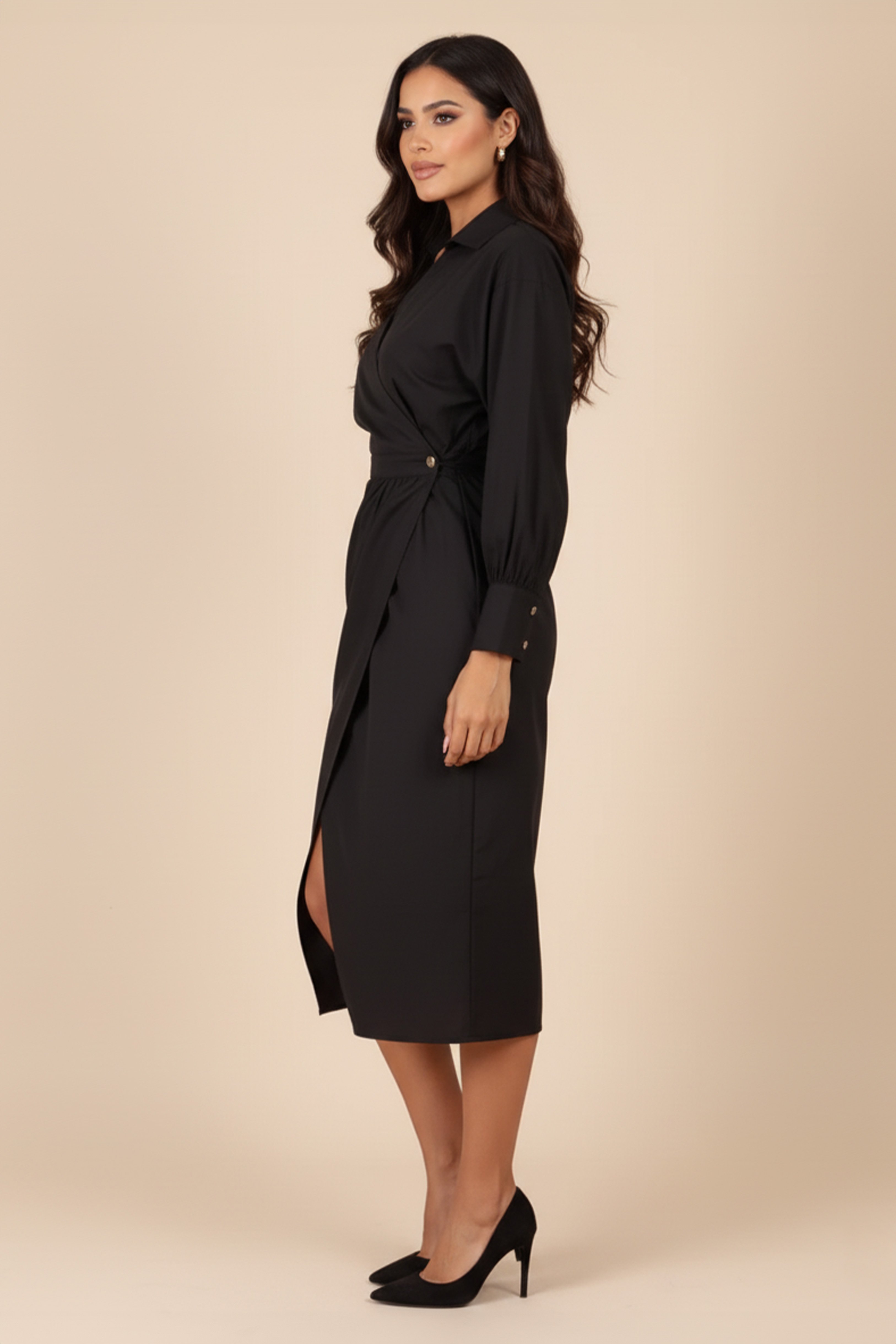 Black midi wrap dress