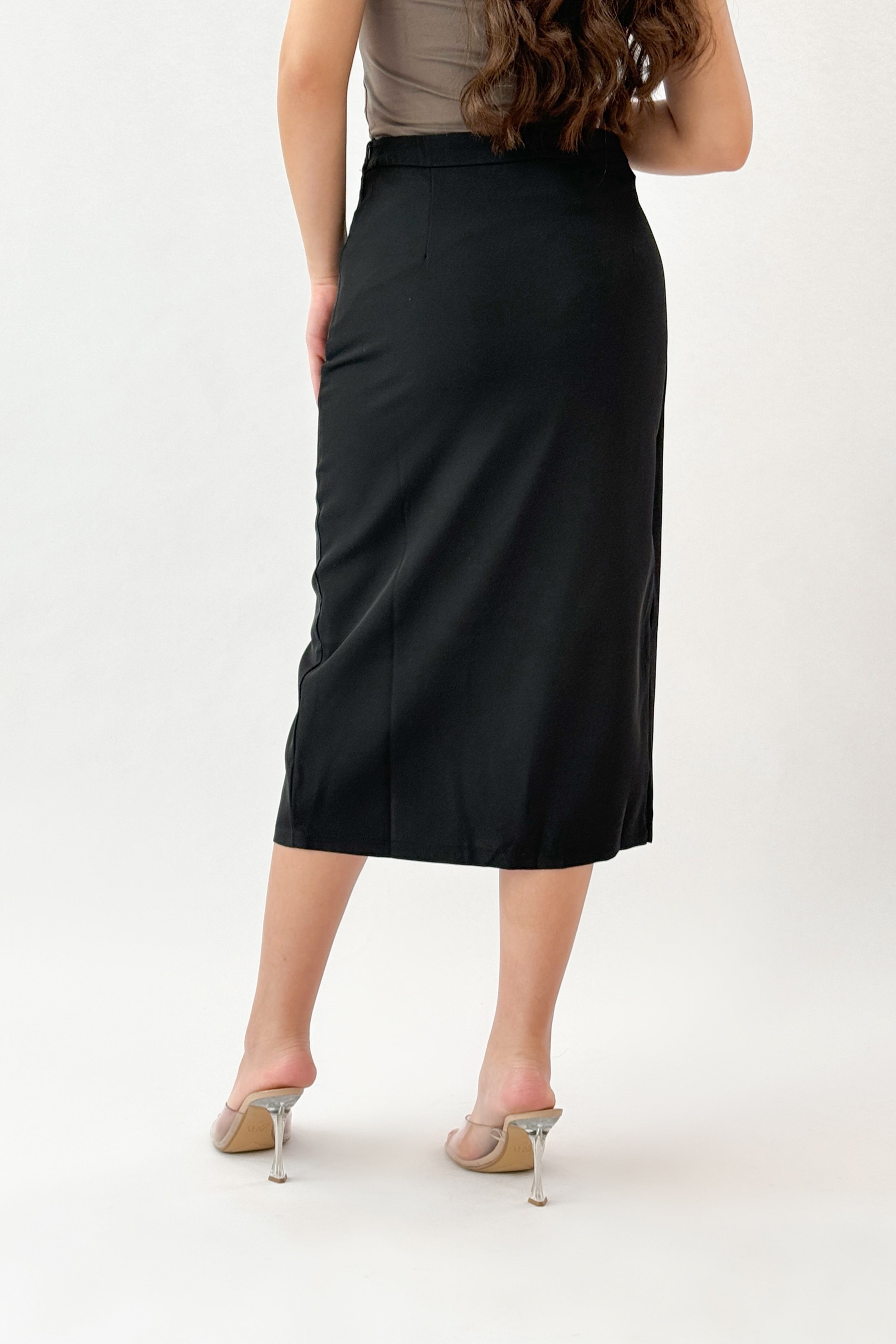 Design type Wrap midi skirt with shirred detailing Story type Wrap midi skirt with shirred detailing The occasion Public outing or special occasions waist narrow stretching Non-stretchable Material crepe Care instructions Wash and steam iron at low temperature 40 percent and hang dry <!-- -->