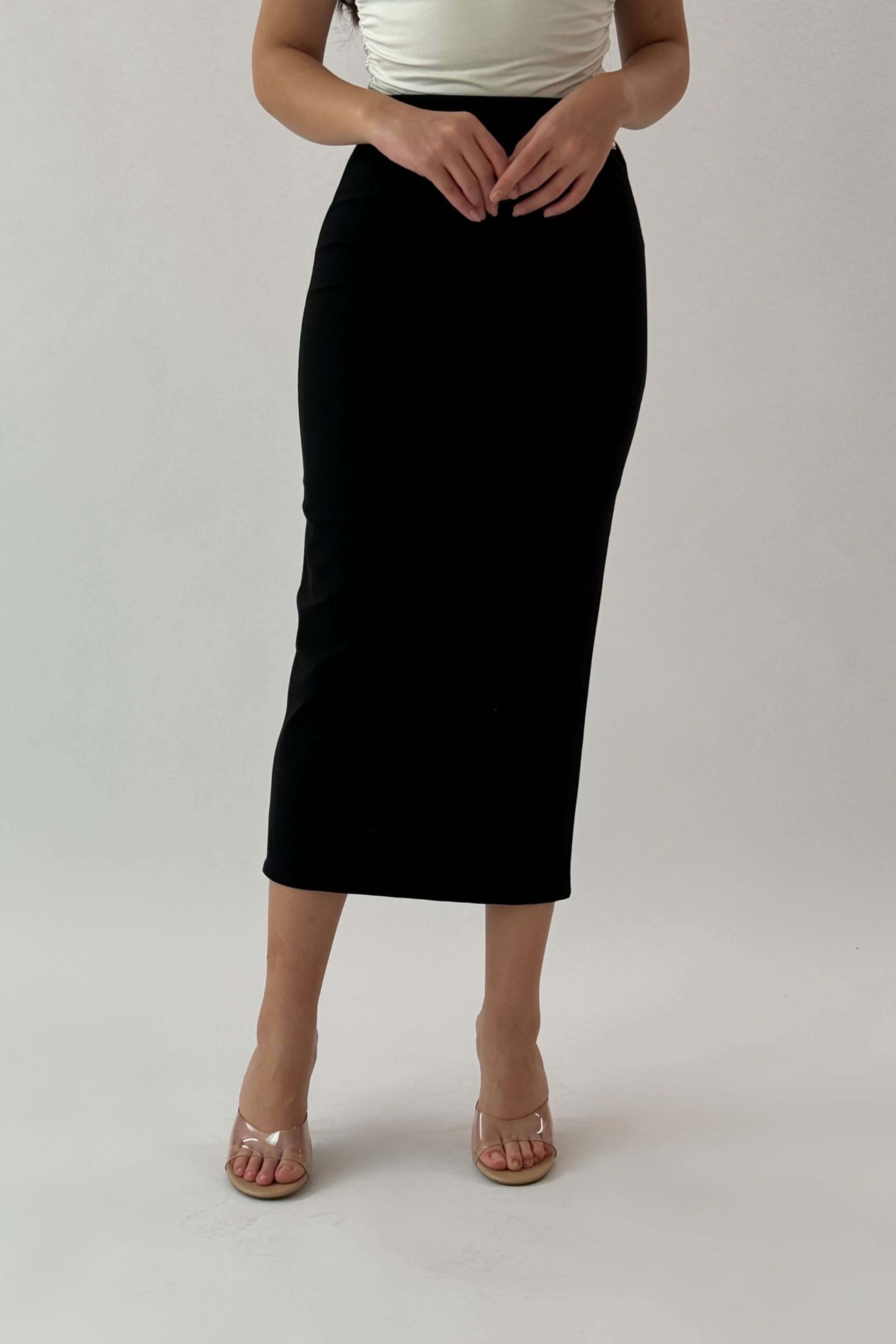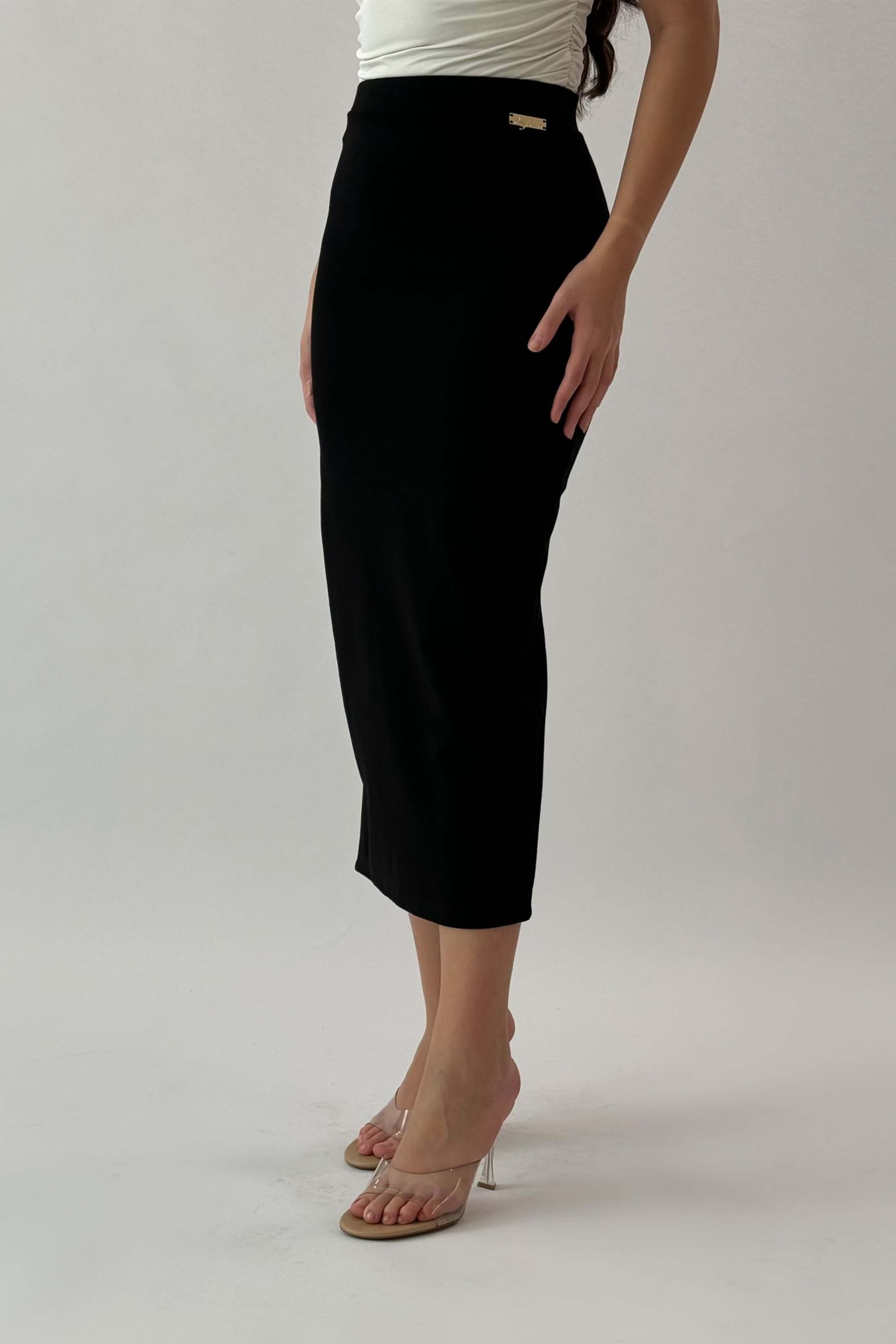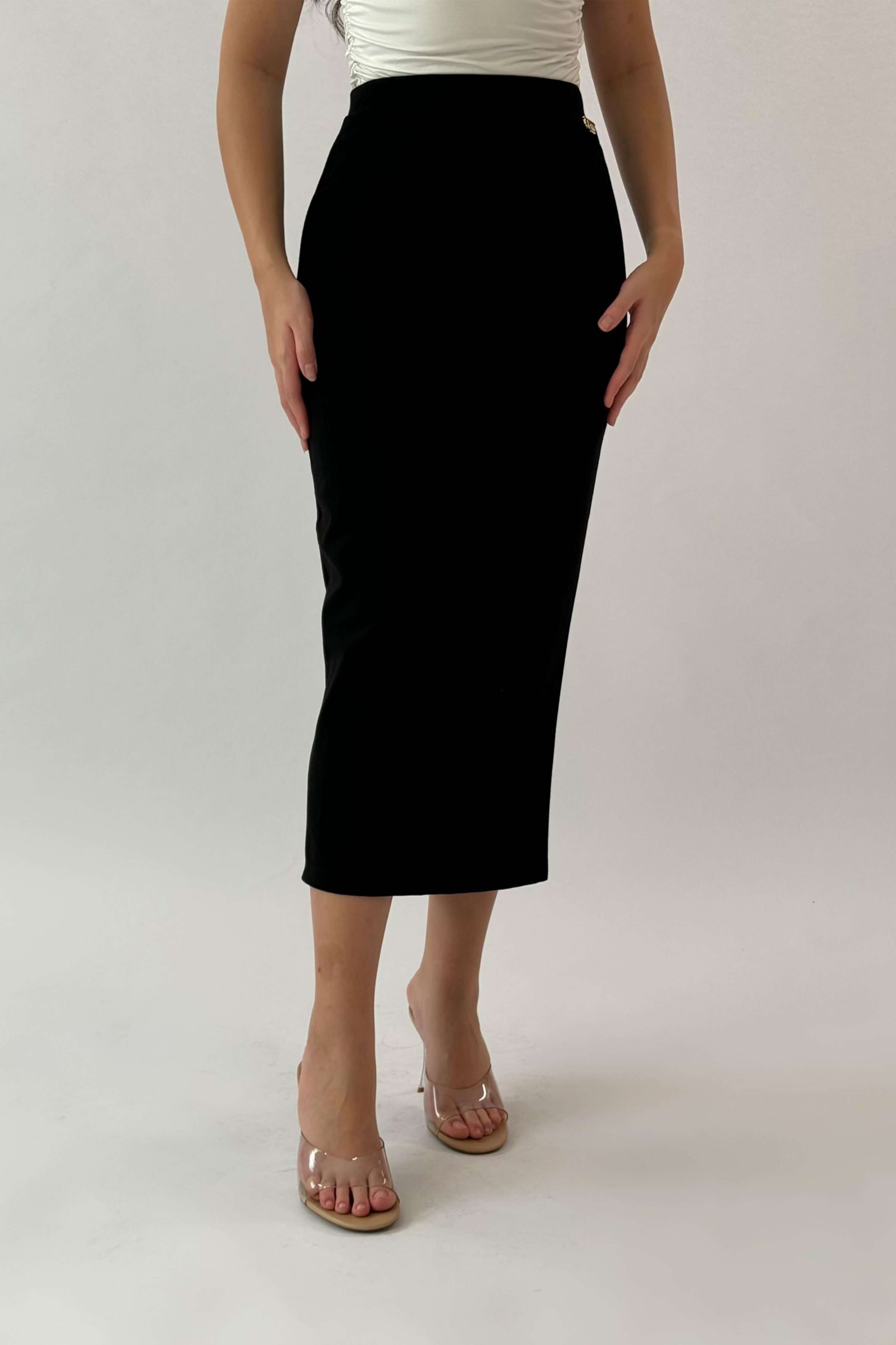 Black midi skirt with a slim fit