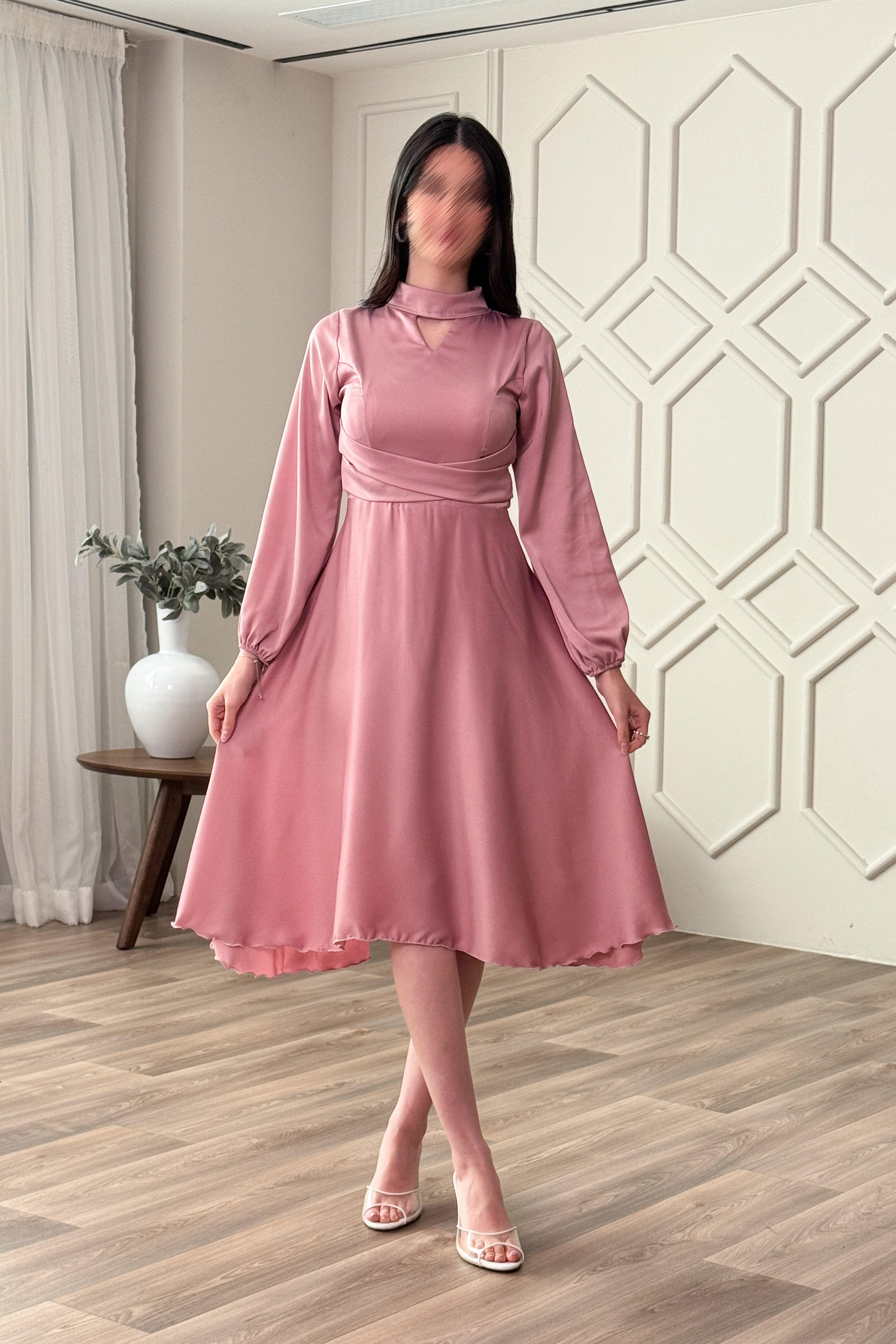 نوع التصميم: فستان أنيق كلوش بياقة عالية