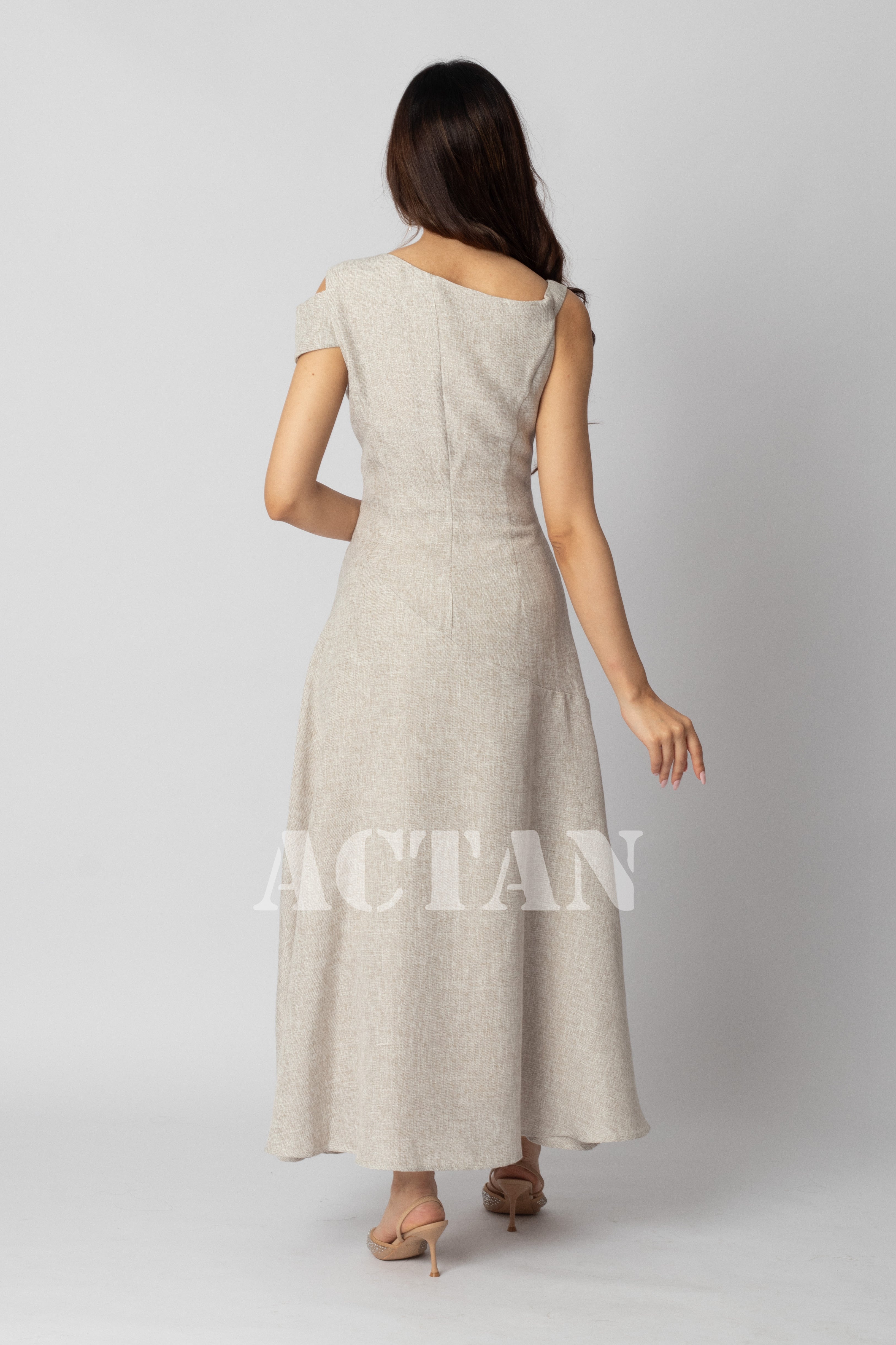 Design type Pearl-embellished linen maxi dress Story type Pearl and sequin embellished maxi linen dress with short sleeves The occasion Public outing or special occasions waist narrow collar Circular sleeves short stretching Non-stretchable Material linen Care instructions Machine wash and iron with steam at low temperature (40%) and hang dry.