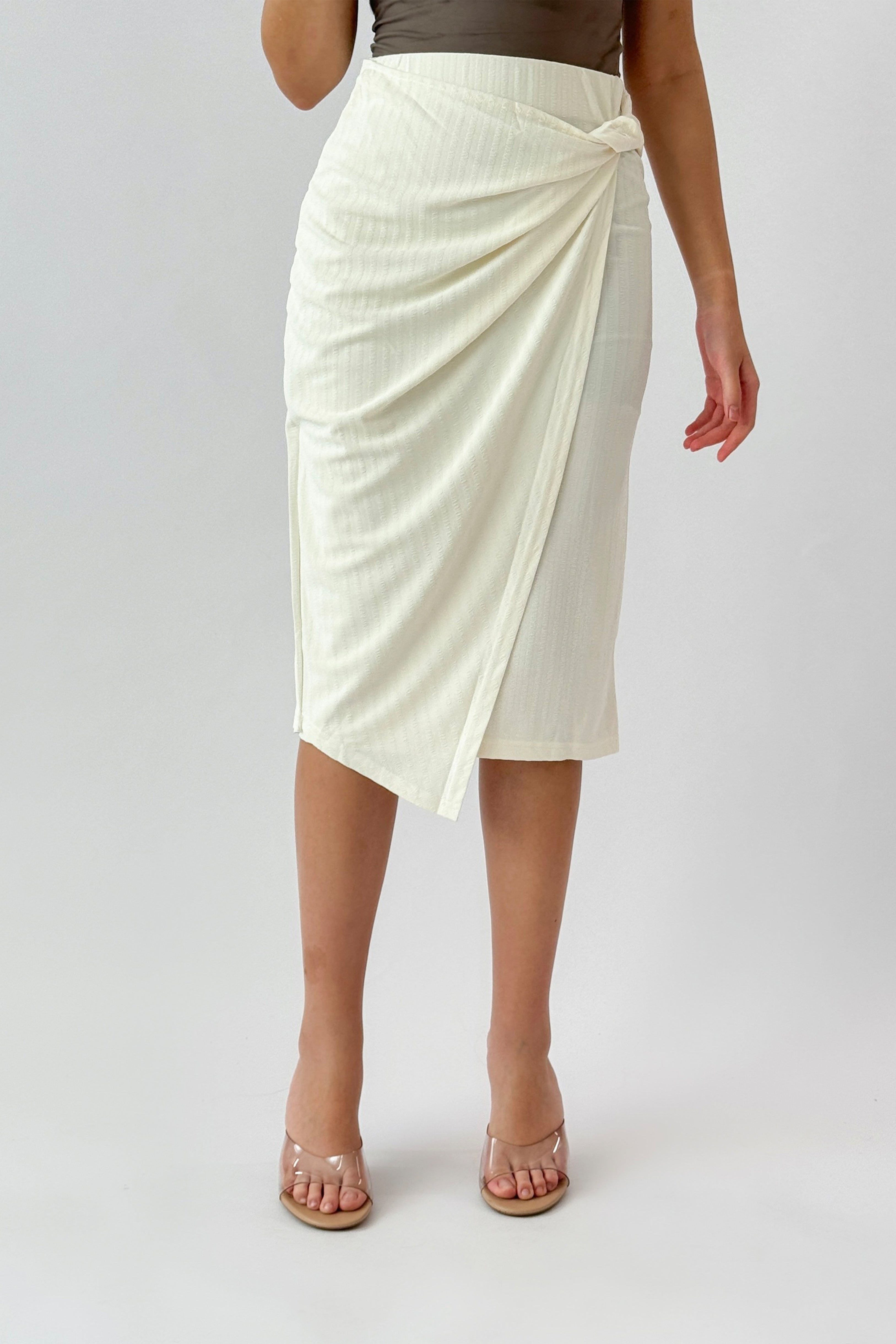 Design type Side wrap midi skirt Story type Striped side wrap midi skirt The occasion Public outing or special occasions waist narrow stretching Expandable Material Stretch Care instructions Wash and steam iron at low temperature 40 percent and hang dry <!-- -->