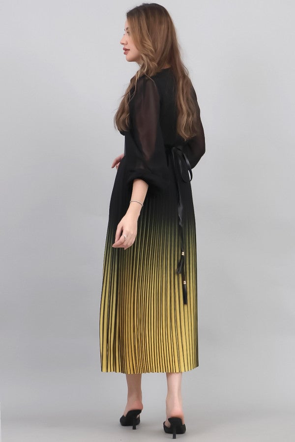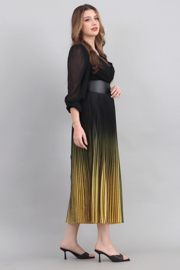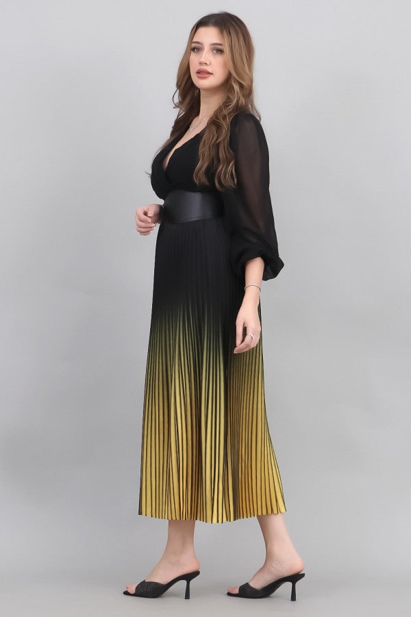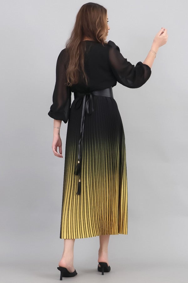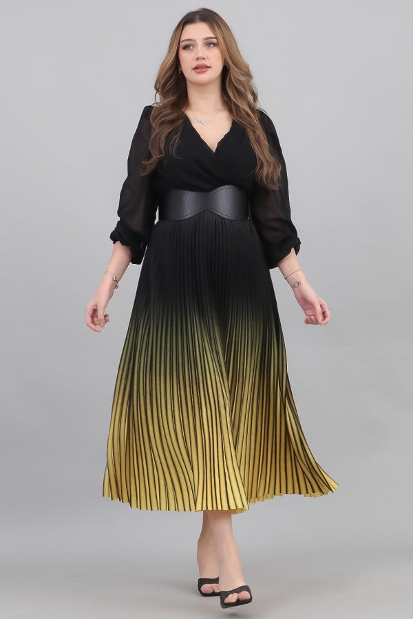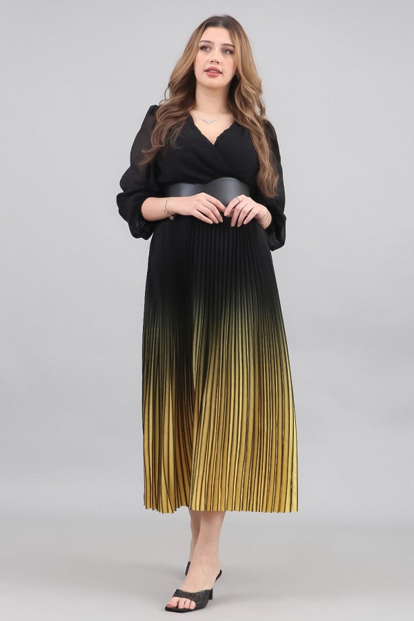 نوع التصميم فستان بليسيه مموج اللون بحزام